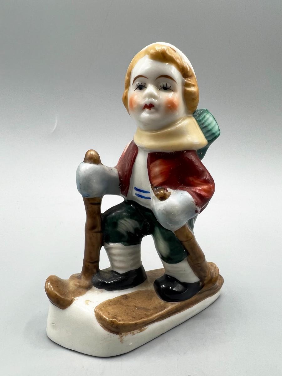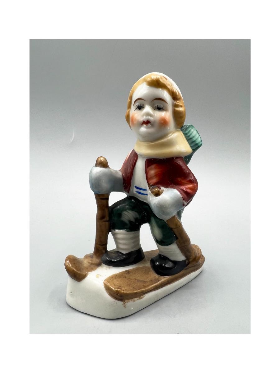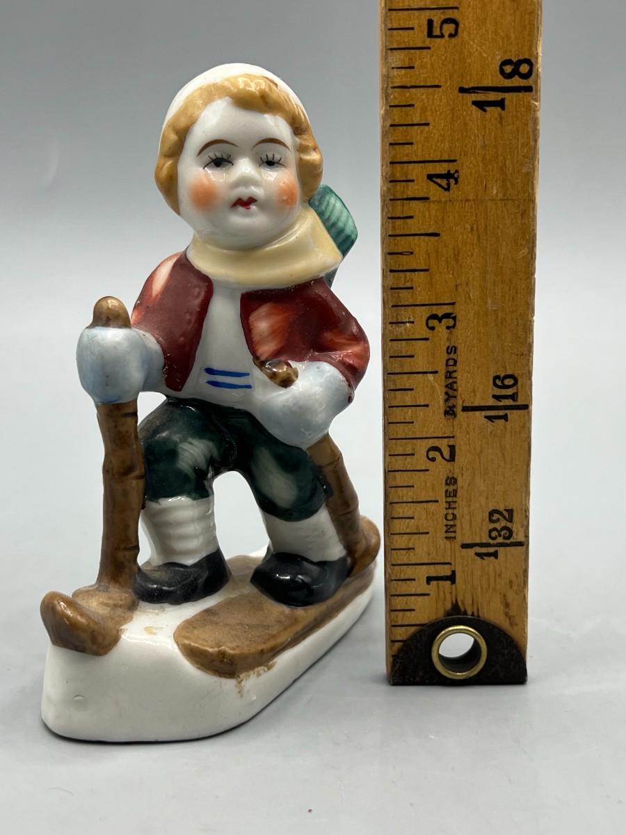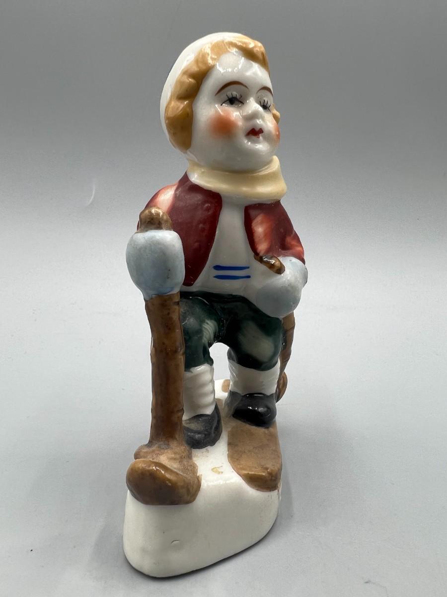 Figurine Occupied Japan Vintage Made in Dutch Boy Skiing Ceramic Porcelain