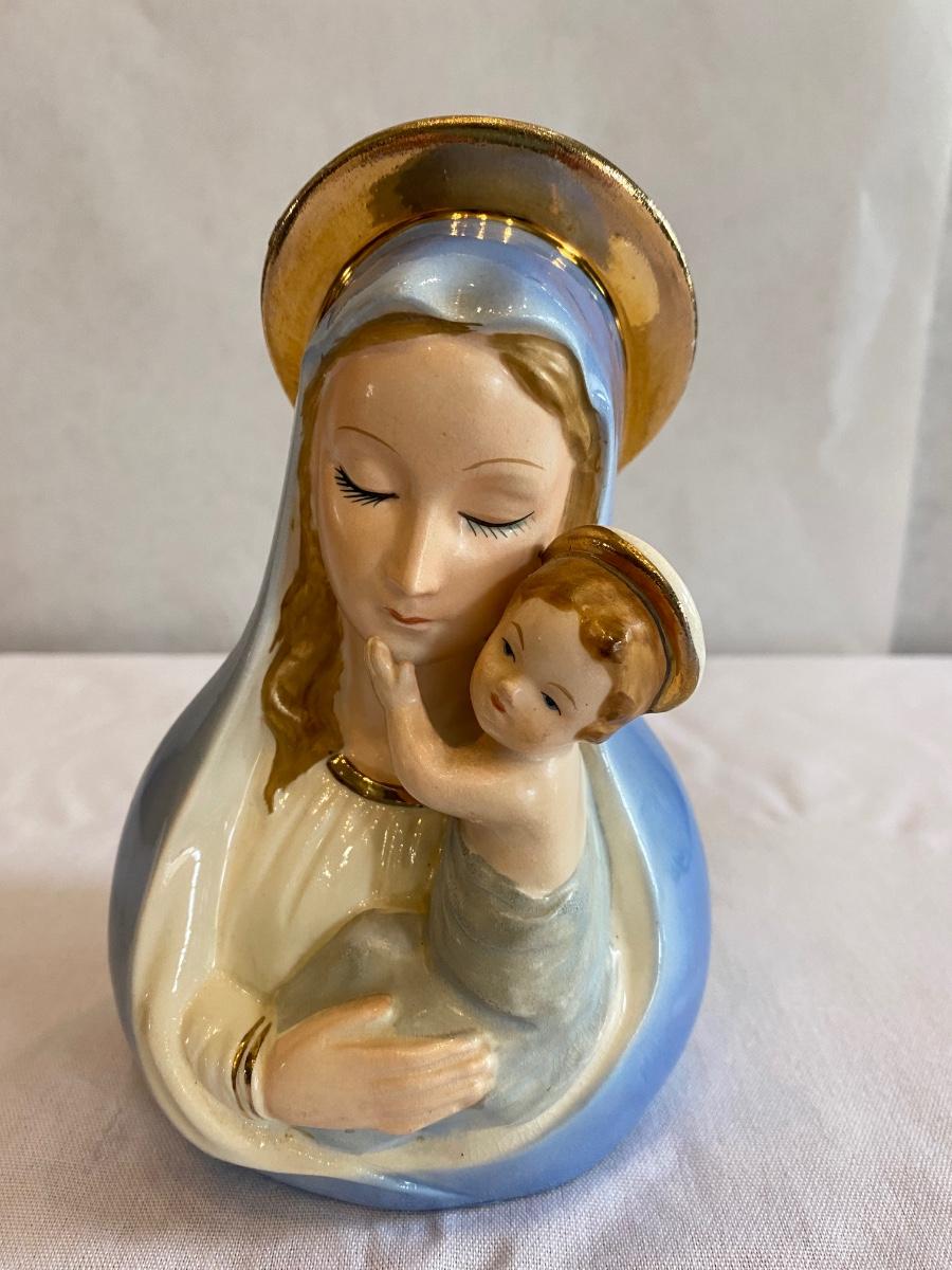 Vintage Madonna and child planter. Approx 6-3/4”H x 4-1/2” W. Good vintage condition