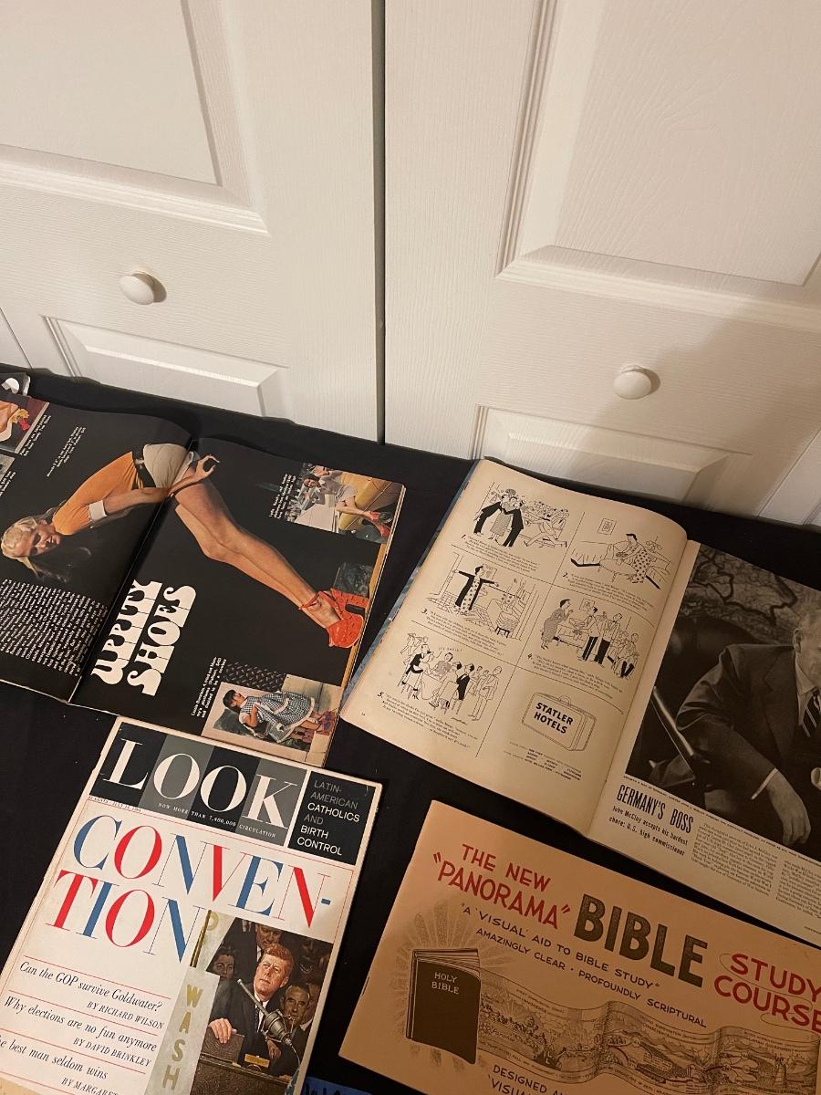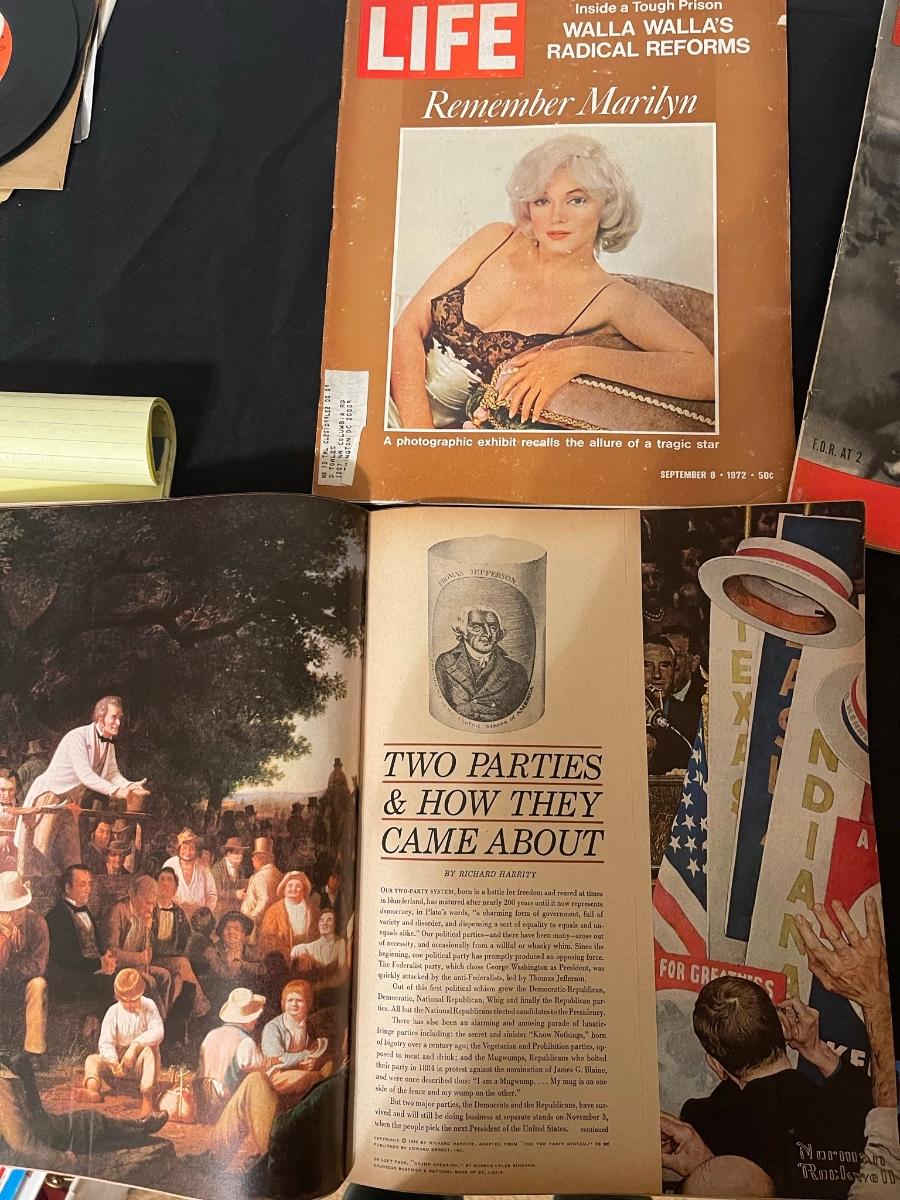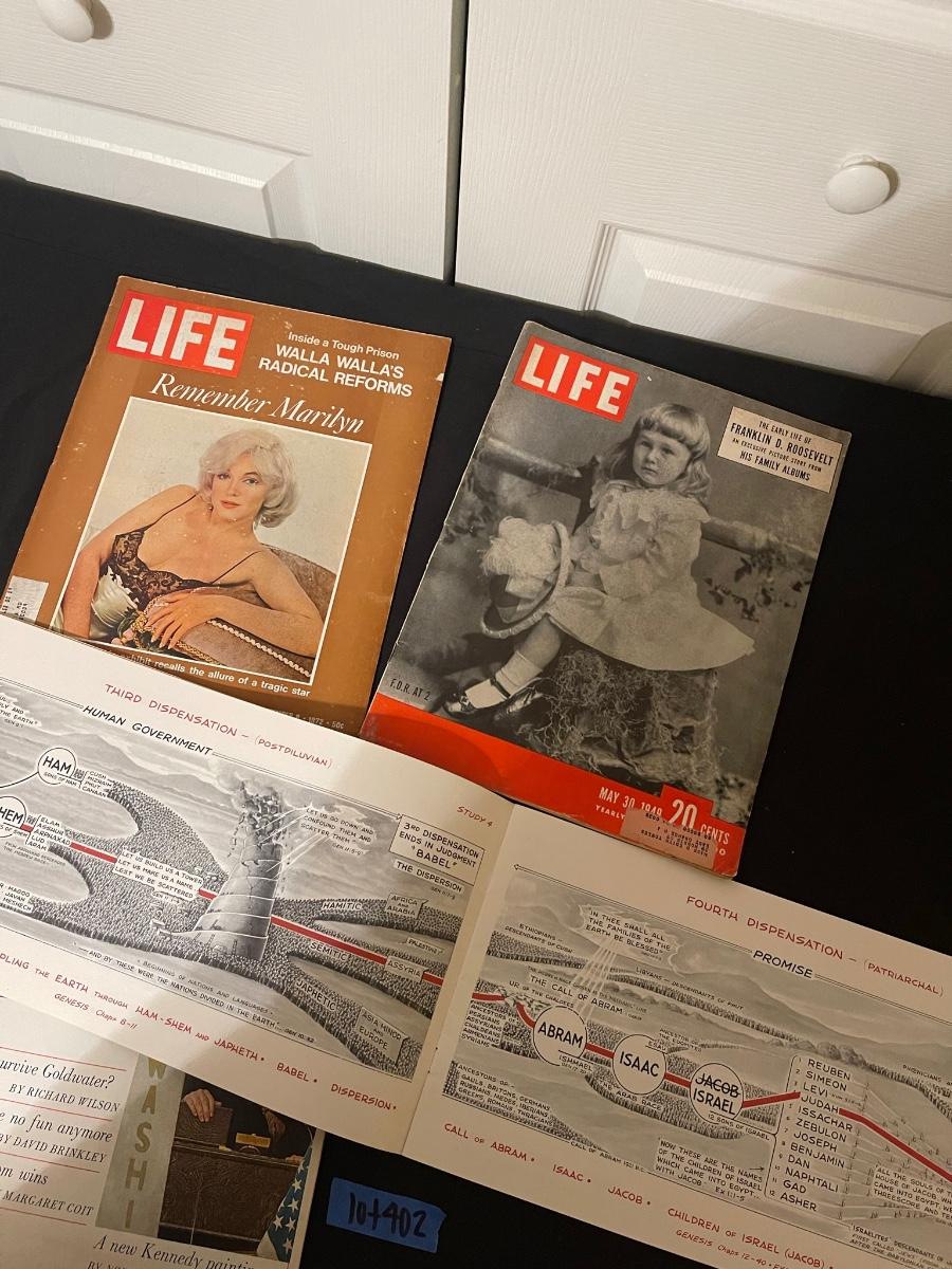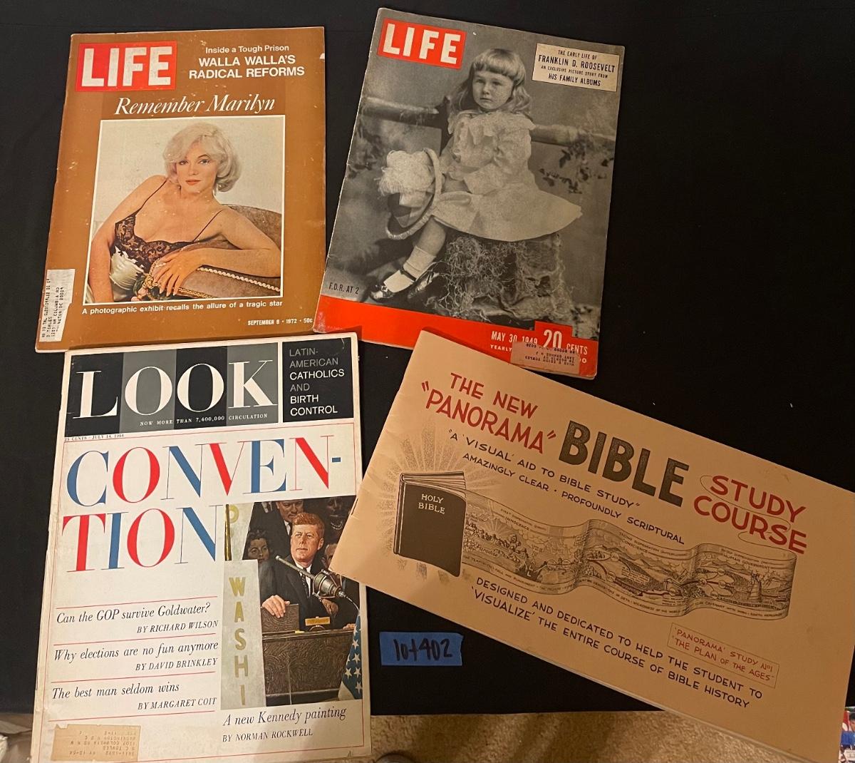 (2) Vintage Life Magazines - 1972 "Remembering Marilyn", 1949 "The Early Life of Franklin D Roosevelt. Look magazine from 1964 - Convention, "The New Panarama" bible study course.