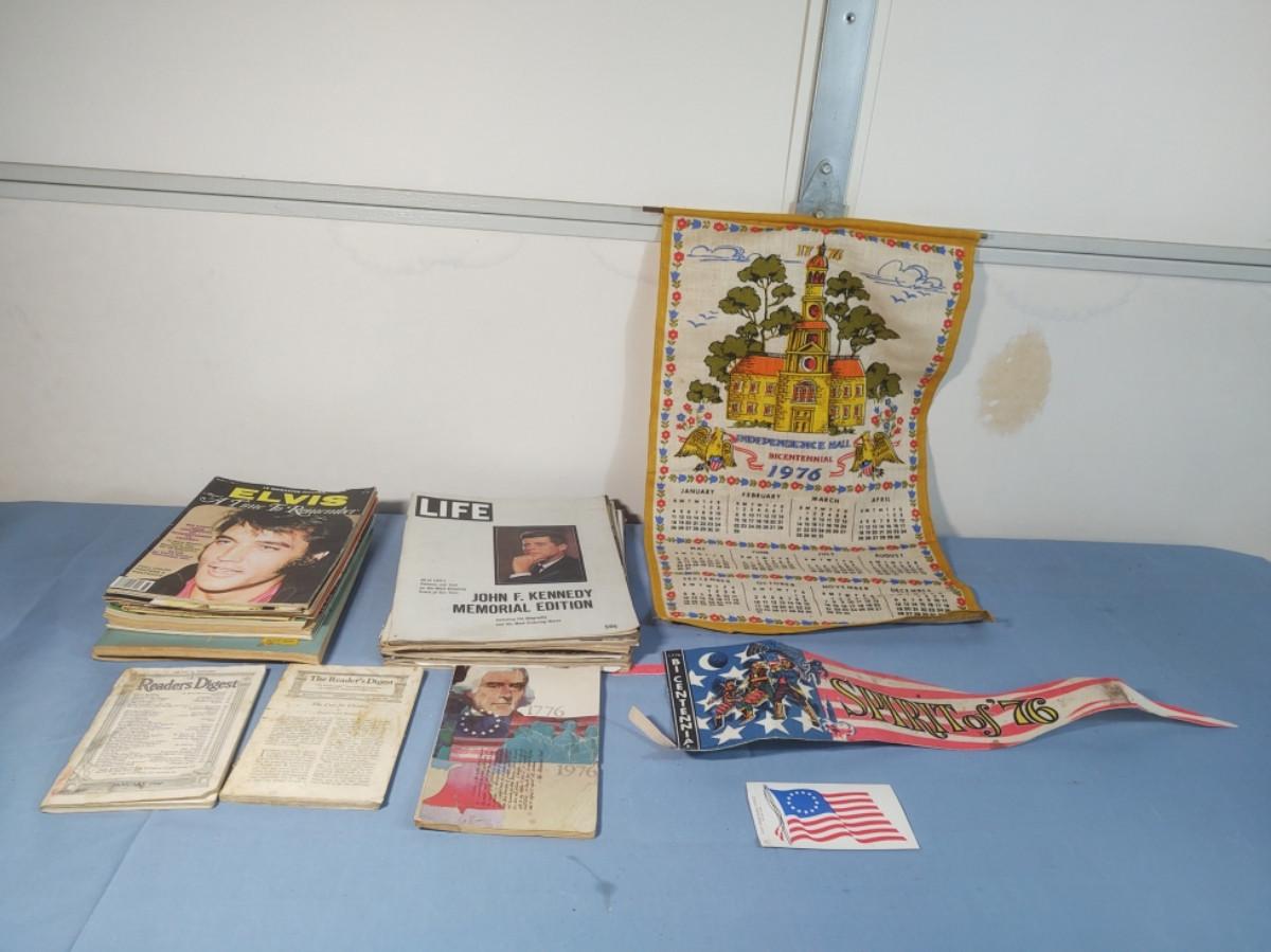Several Bicentennial collectibles as well as historical issues of Time and other magazines.