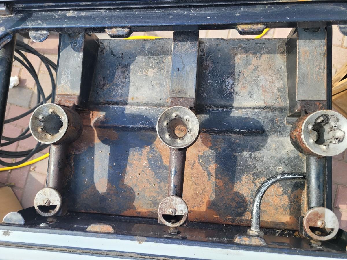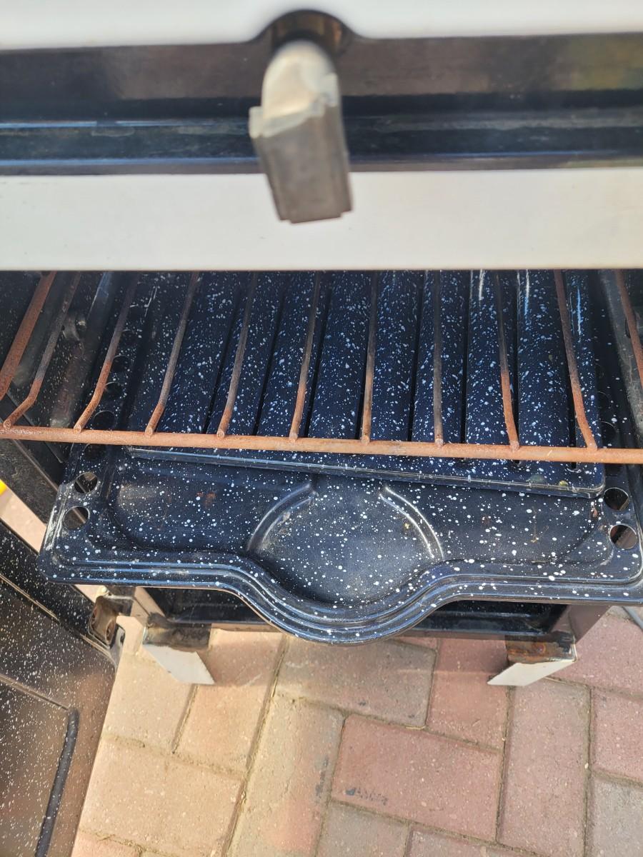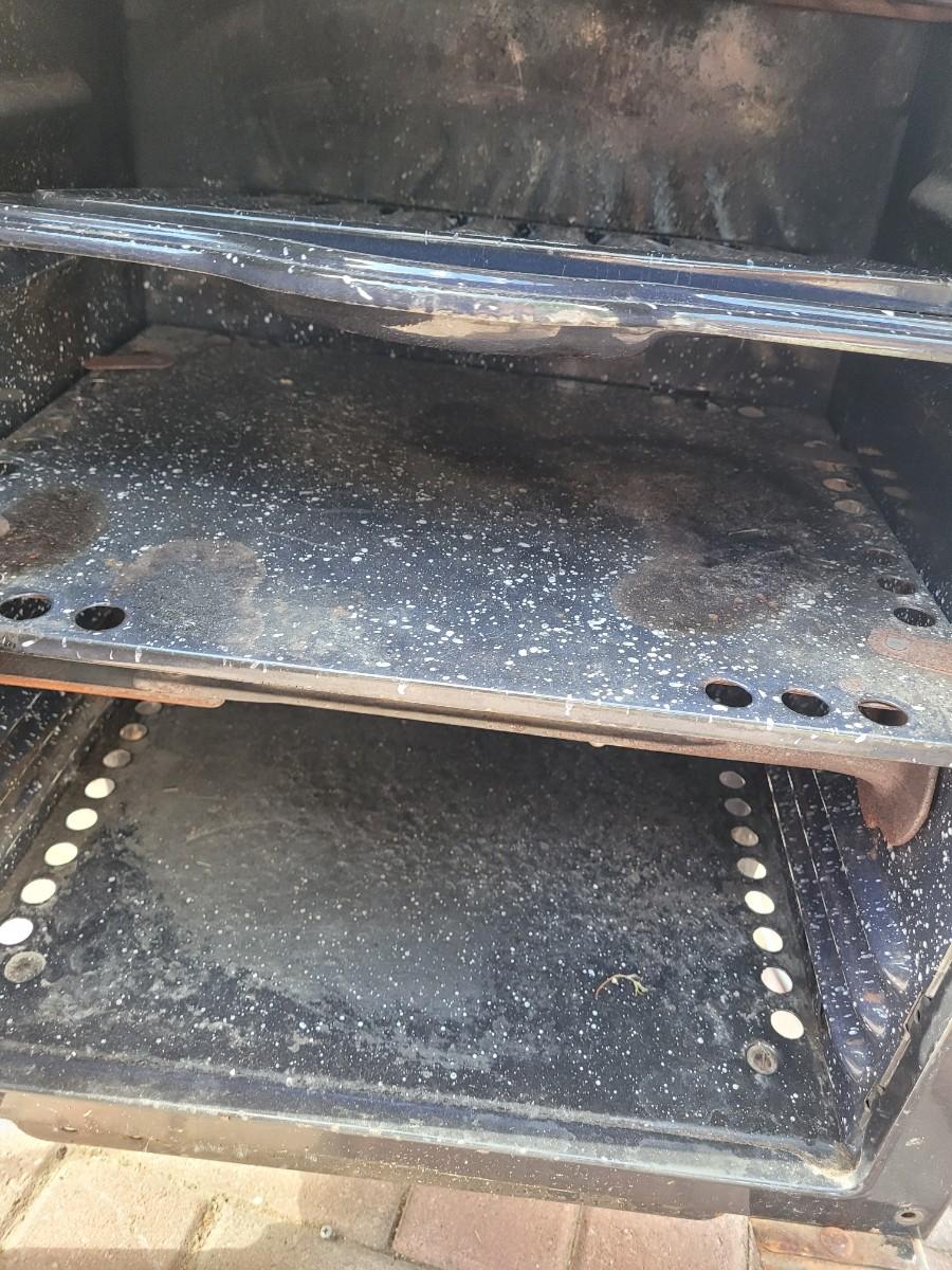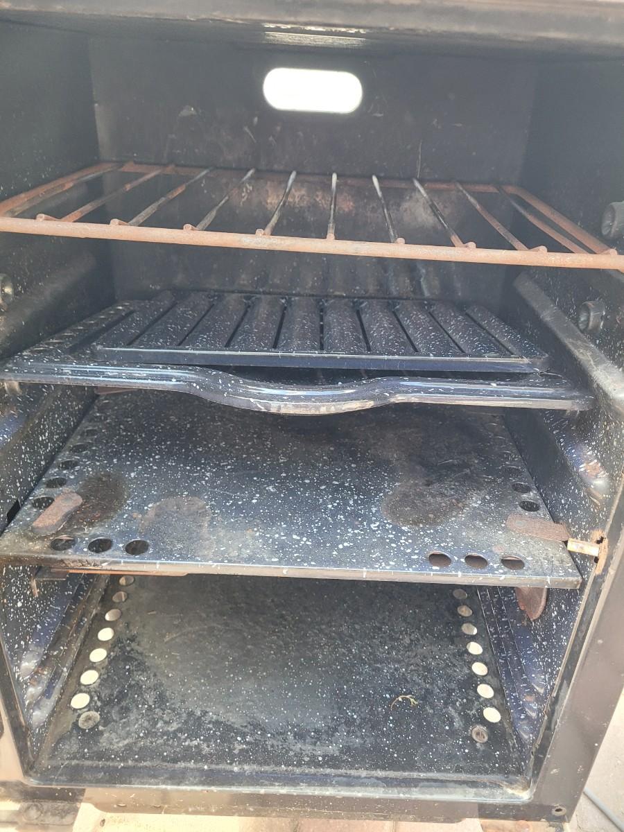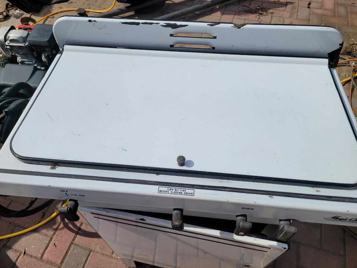 Looks to be complete, I'm not sure if it's set up for propane or natural gas. Measures 28 in wide 17 in deep and 38 in tall with the lid closed and 48 and 1/2 in tall with the lid open. The porcelain does have some chipping see the photos carefully for additional description