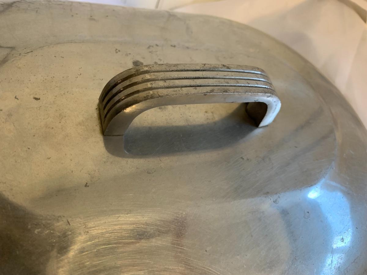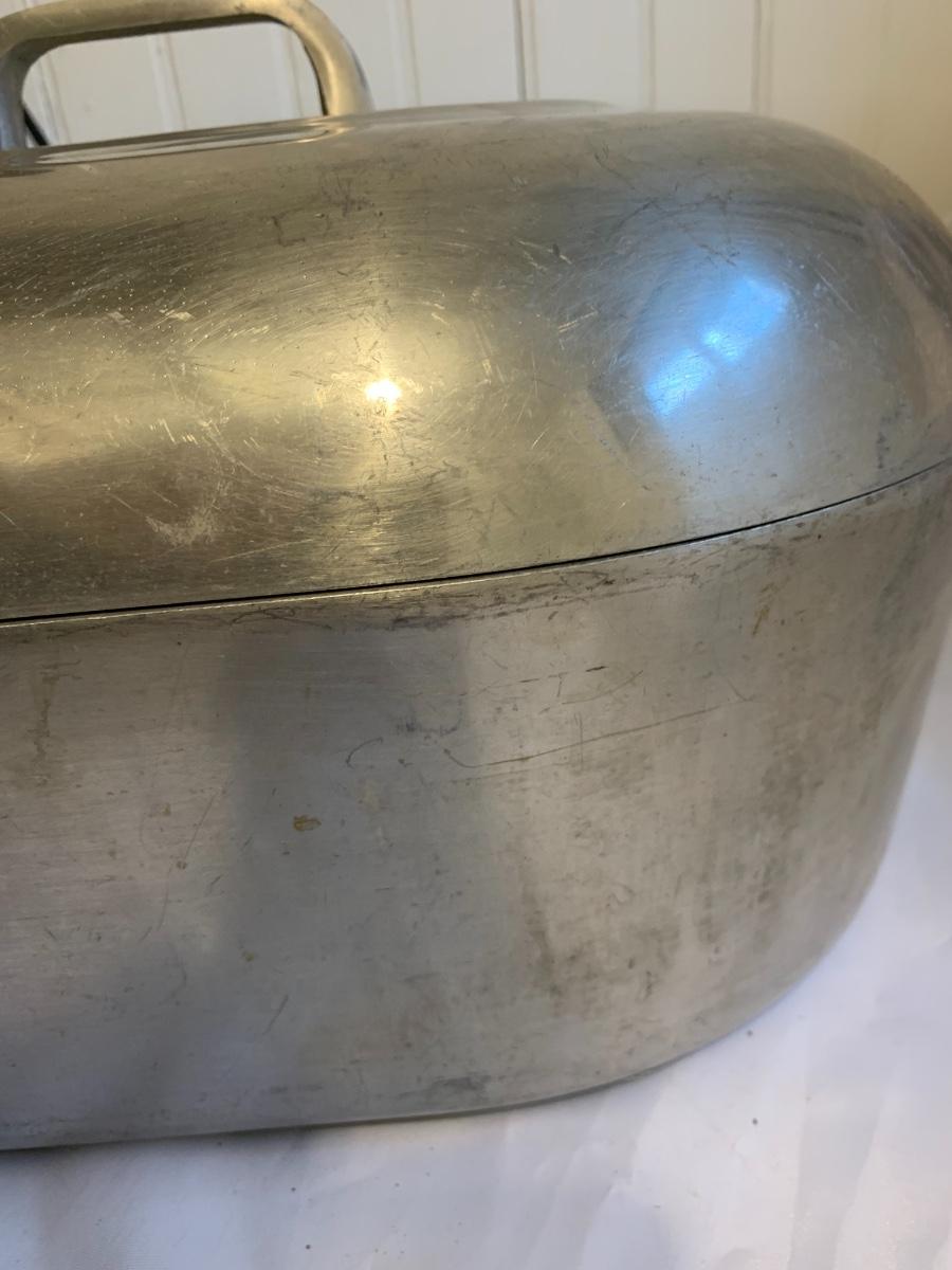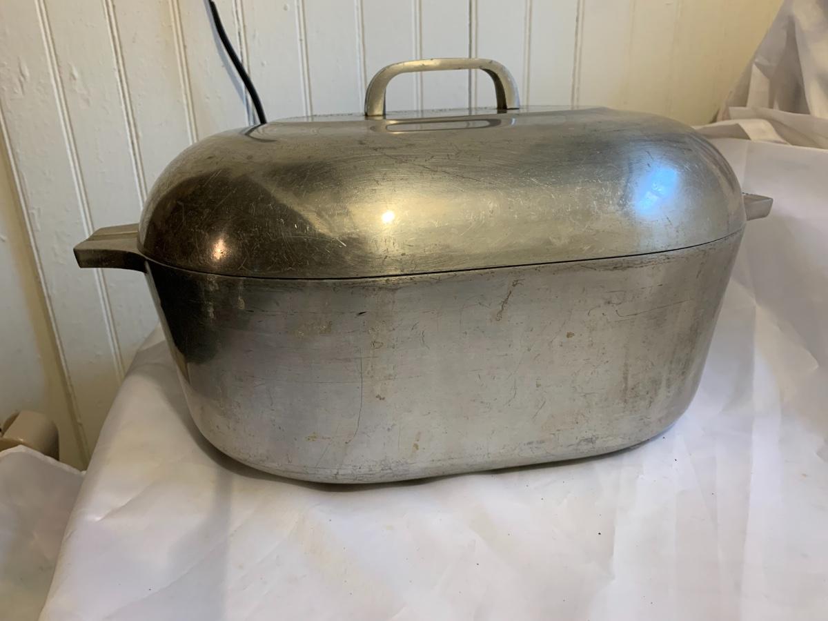 Heavy lidded pan marked “Wagner Ware, Sidney, Magnalite, . It has been seasoned and has very nice solid handles