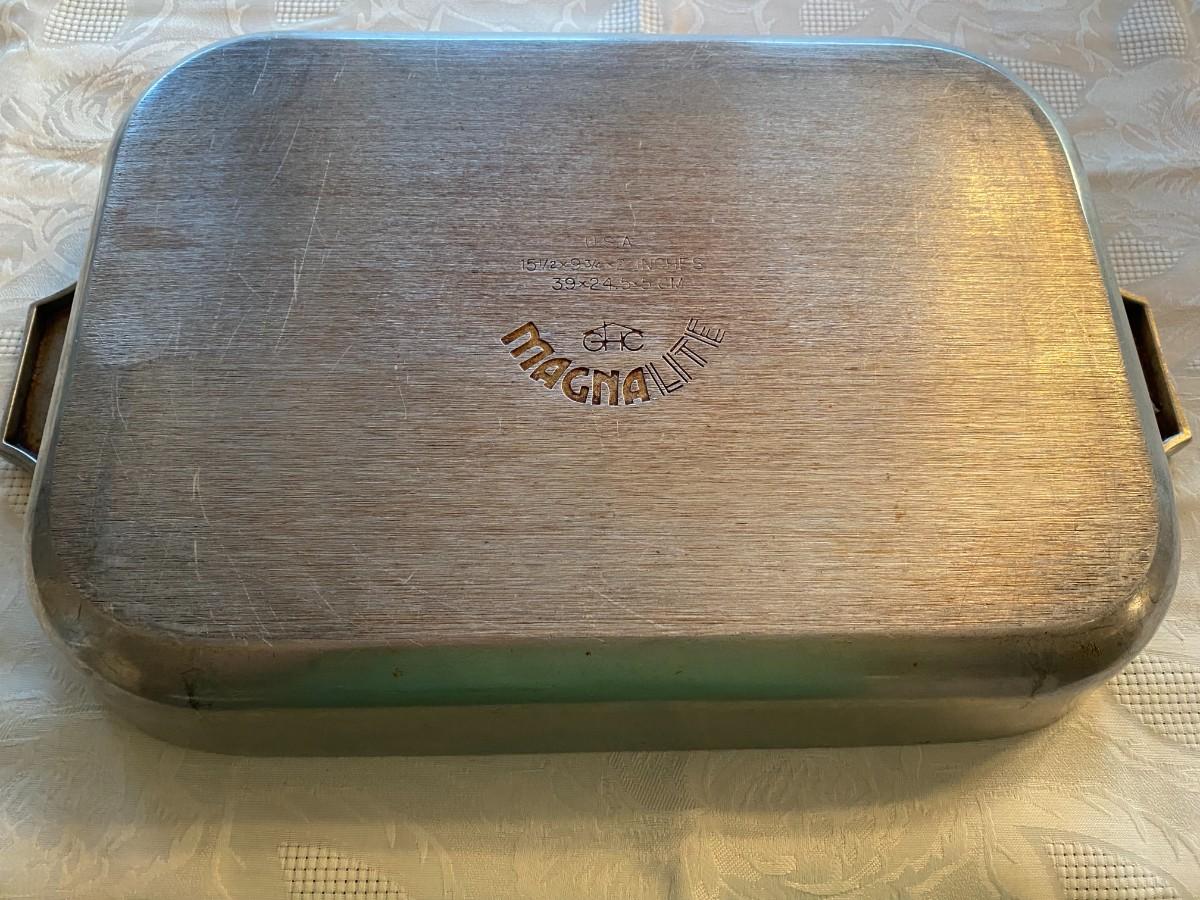 .Vintage Magnalite roasting pan. 15-1/2 L x 9-3/4 W x 2 D Very good condiiton.