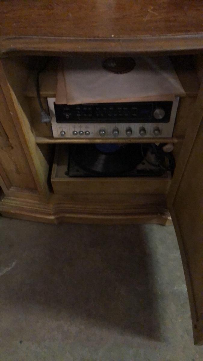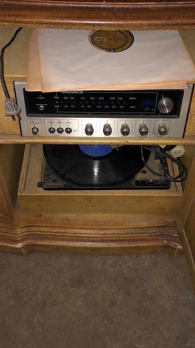 This Magnavox has a turntable and a radio with built in speakers on sides. Works well. Turntable May need some maintenance but it all works.