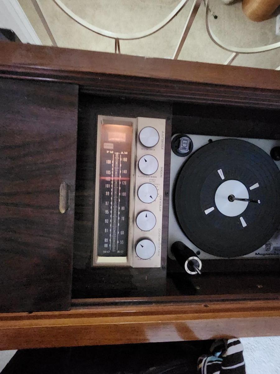 Lot 200 : Vintage Magnovox Stereo Console plugged in Radio works