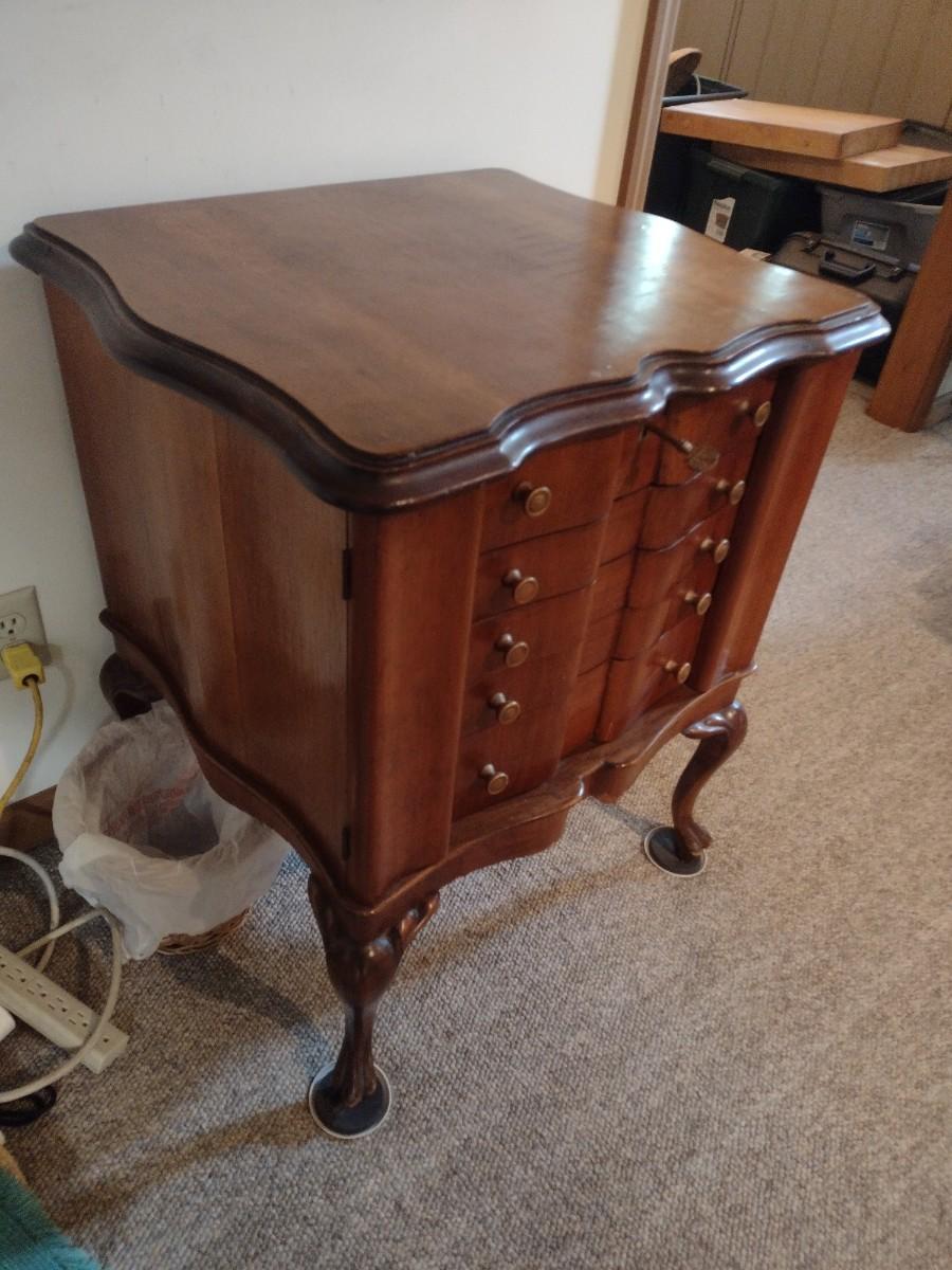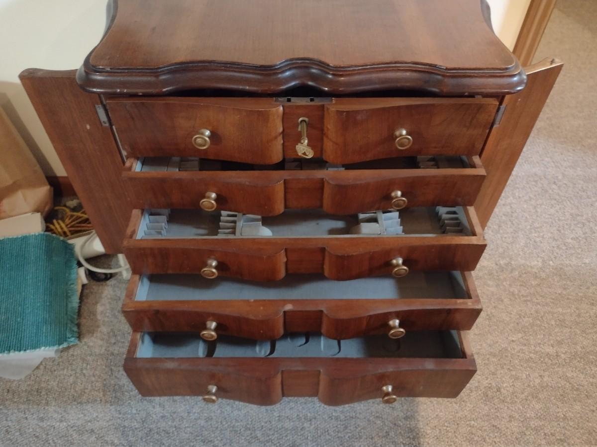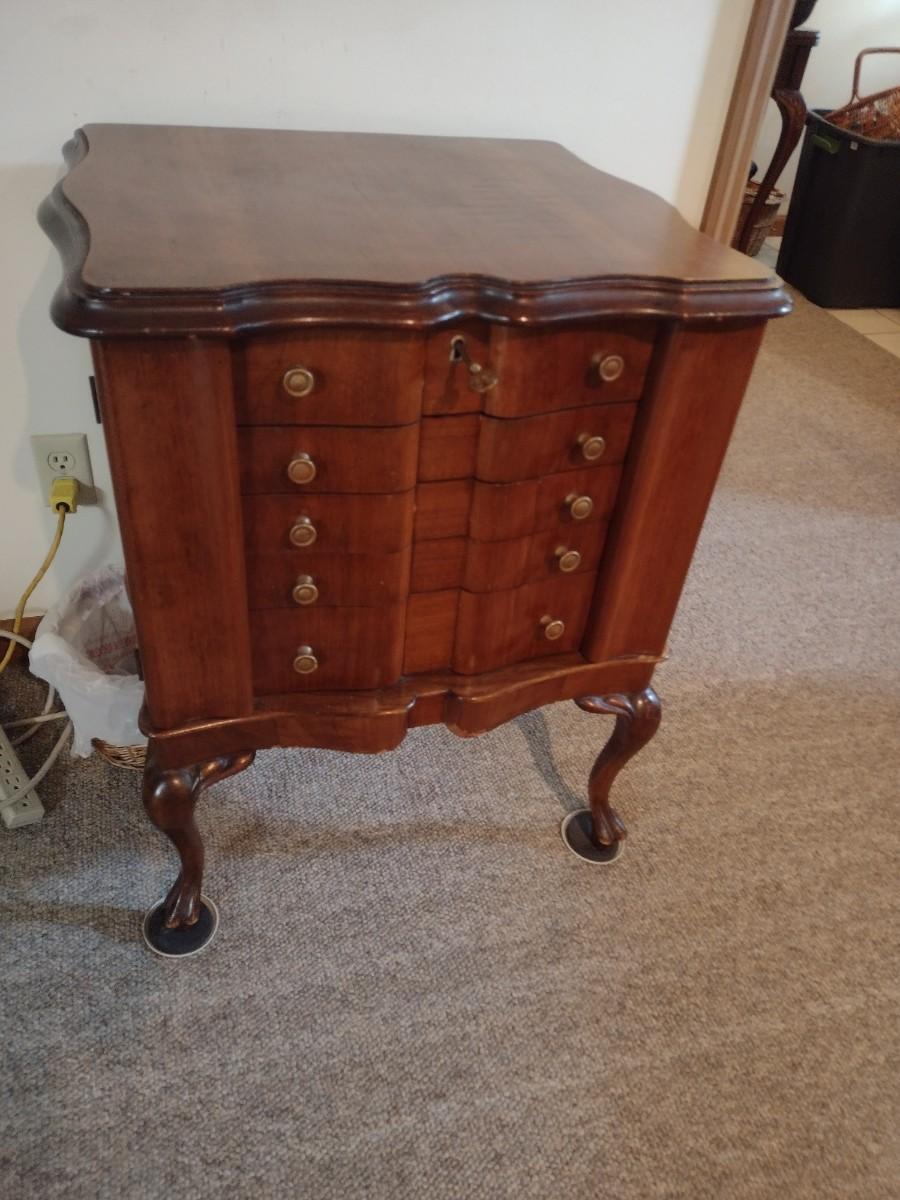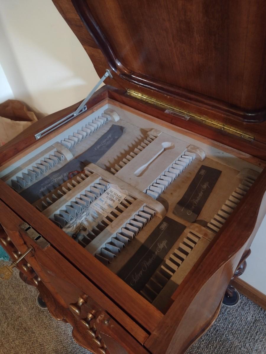 Vintage Mahogany Chippendale Design Silverware Cabinet with Flip Top and Multi-Drawer Storage