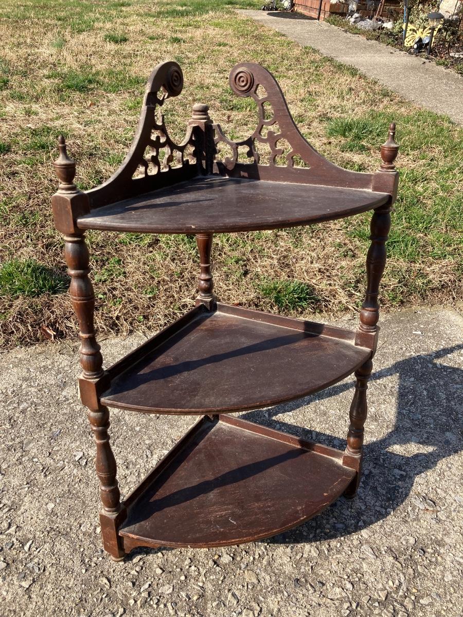 Vintage Mahogany Corner Shelf 17”w x 26”h AS IS