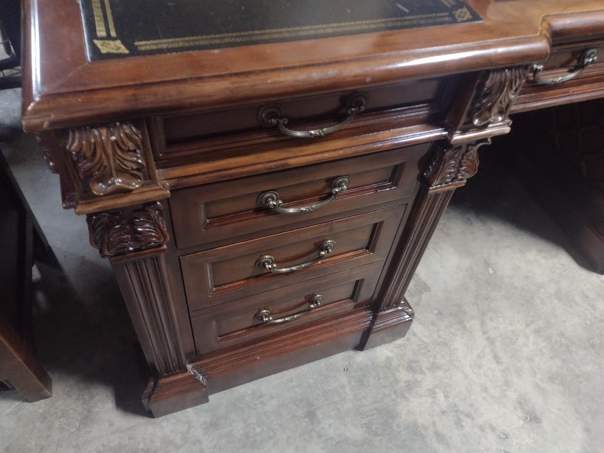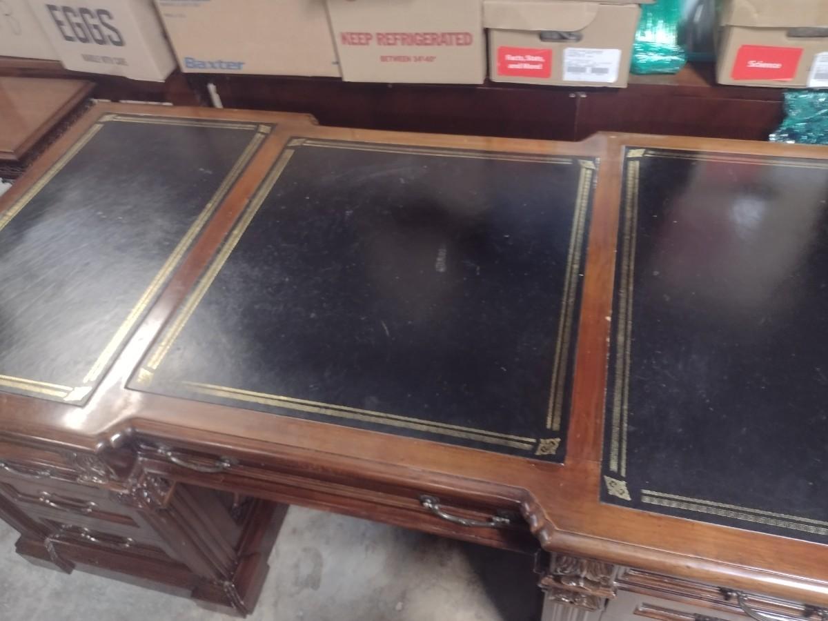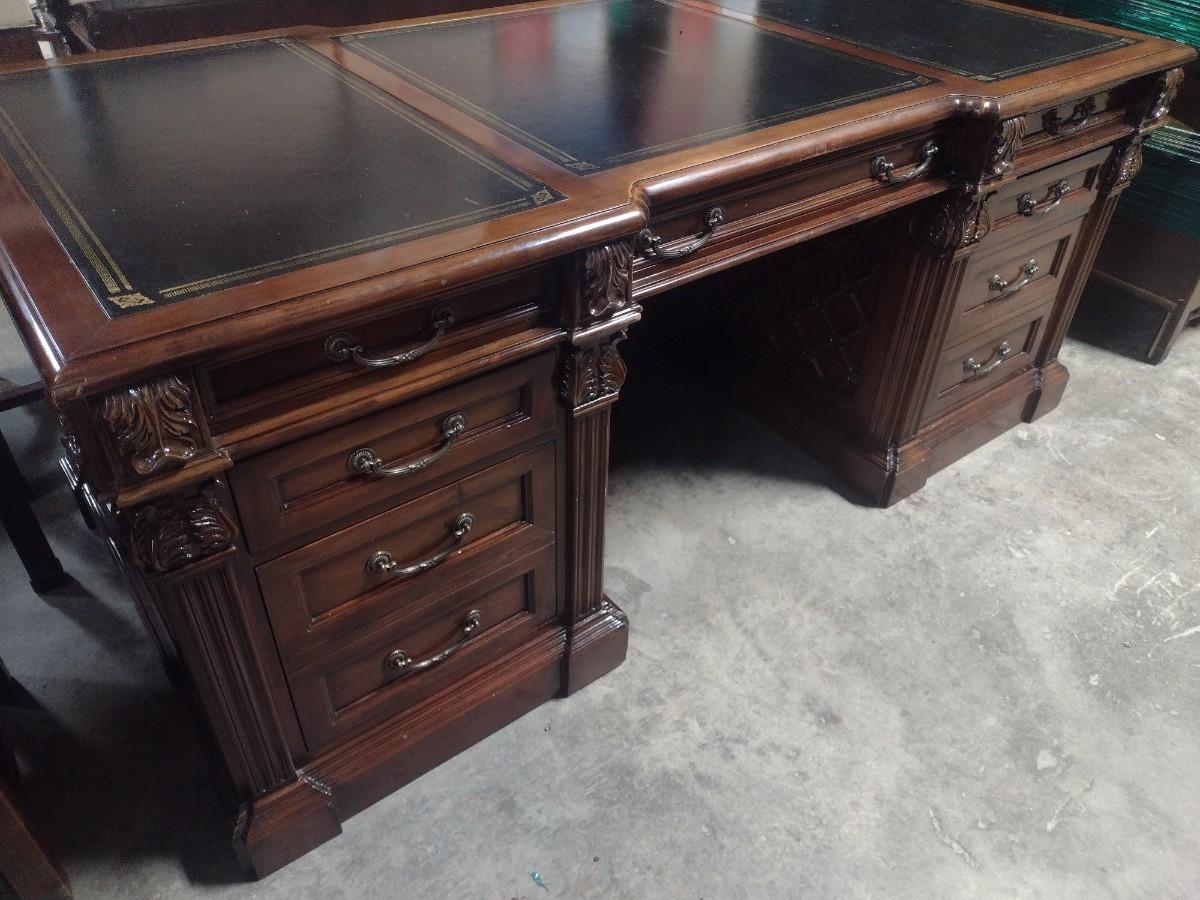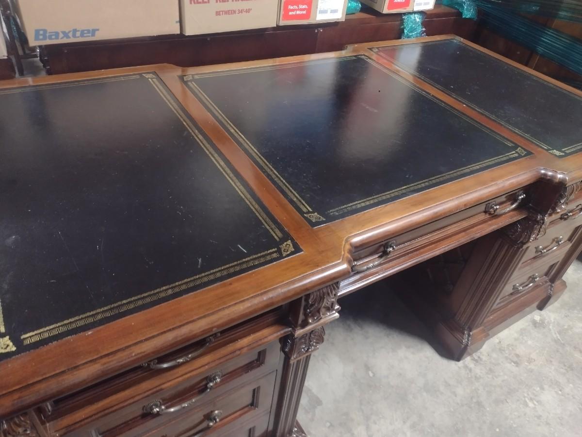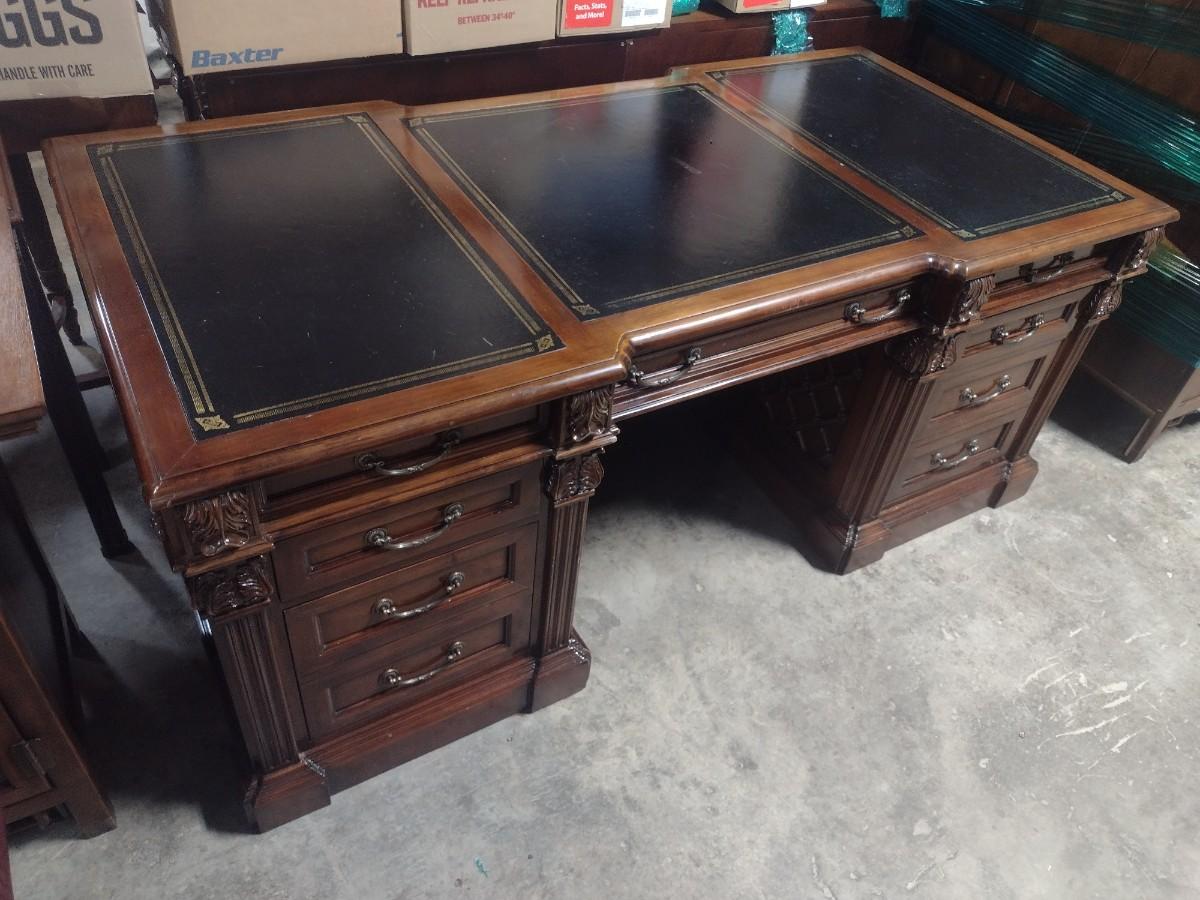 Vintage Mahogany Executive's Desk with Leather Surface (Four Piece Assembly)