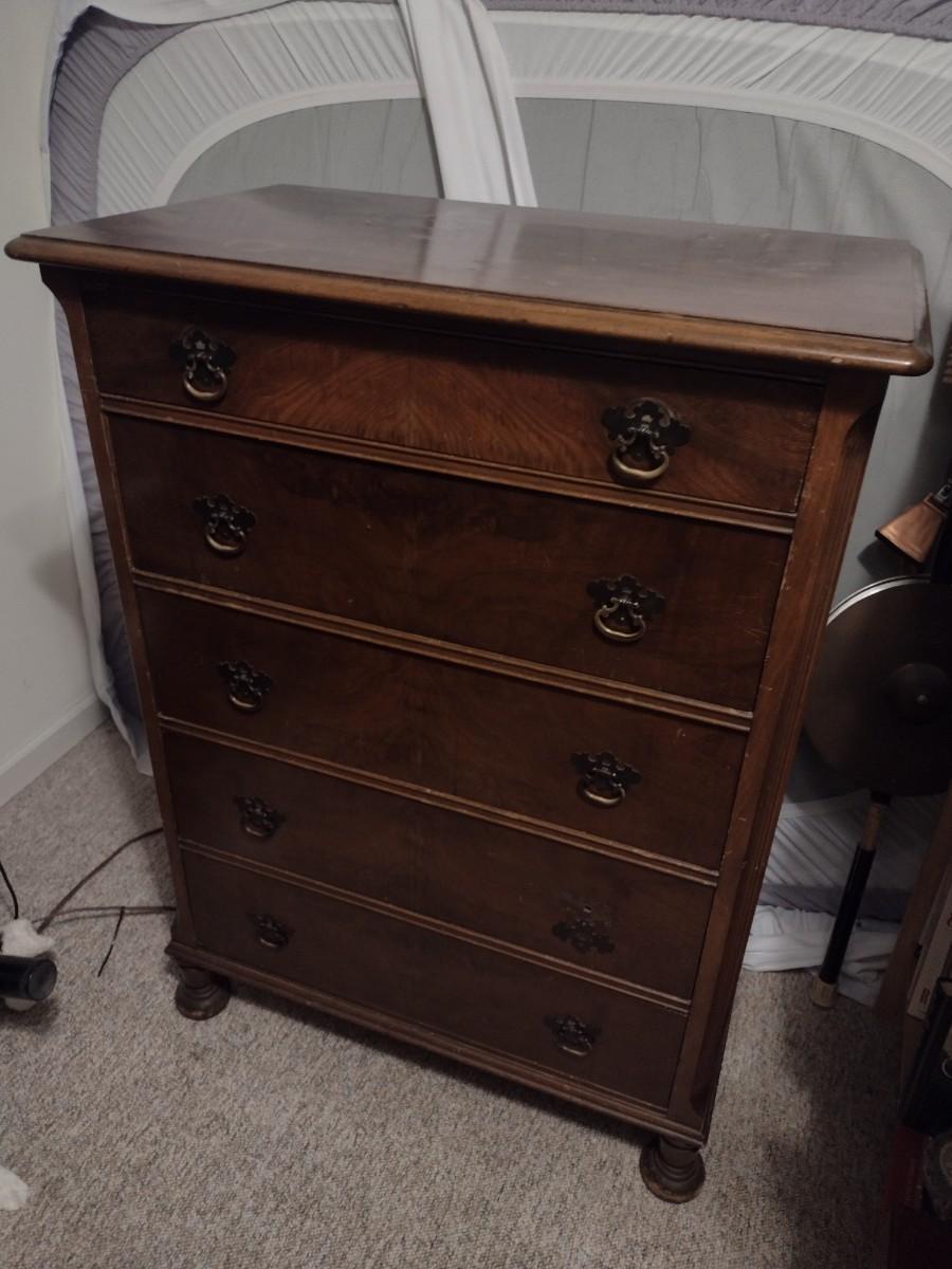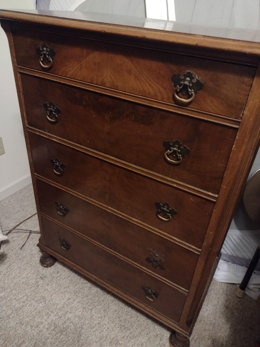 Vintage Mahogany Five Drawer Dresser