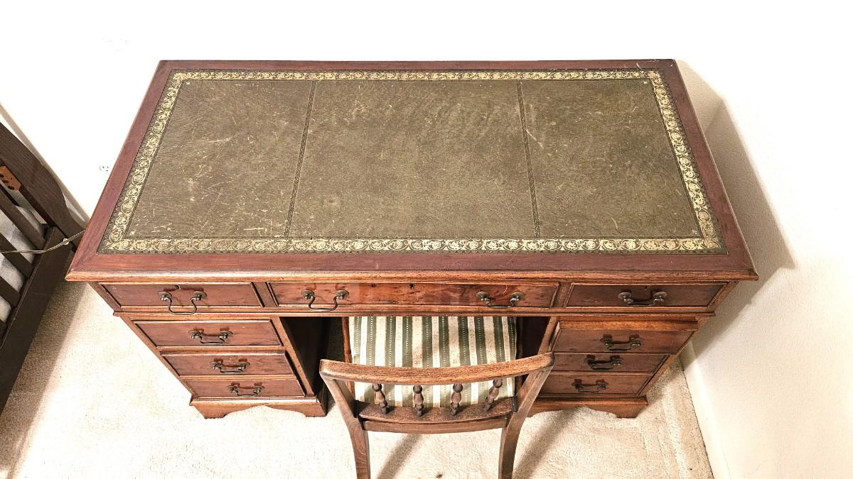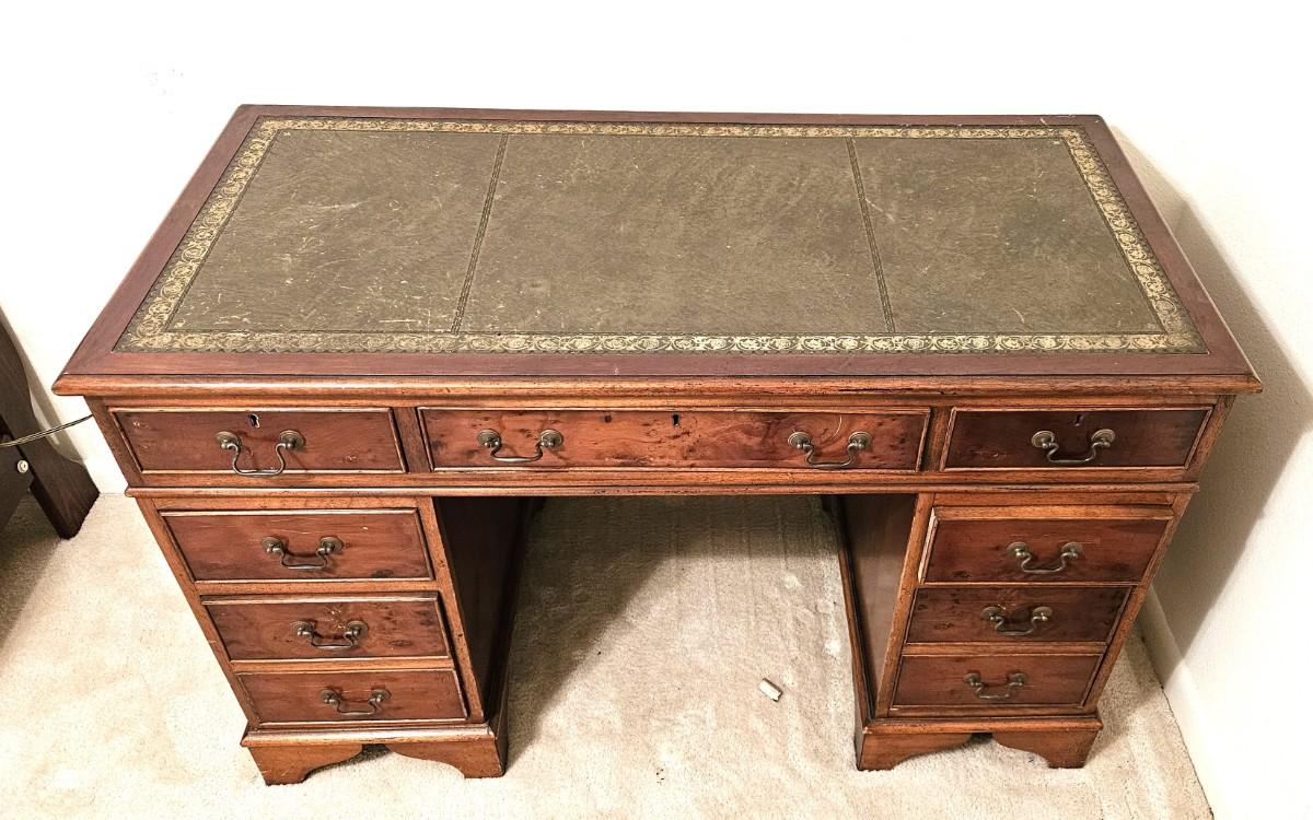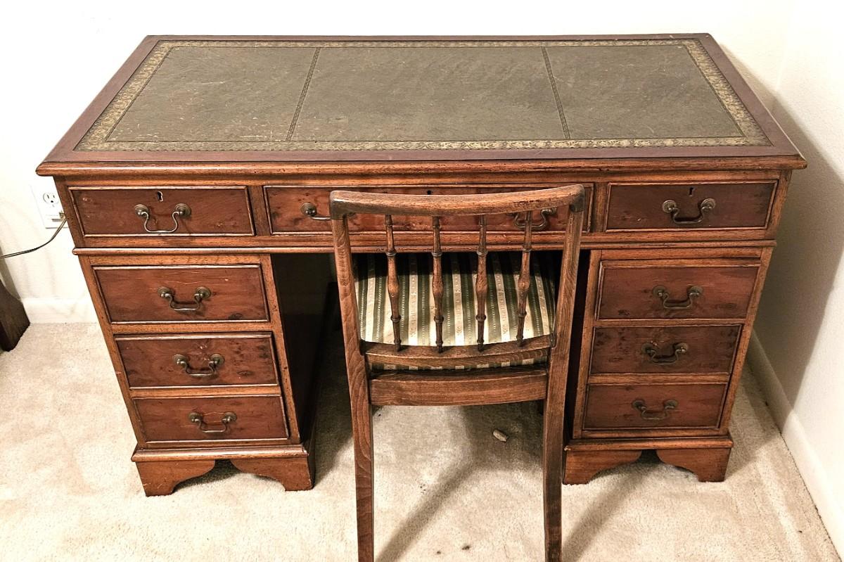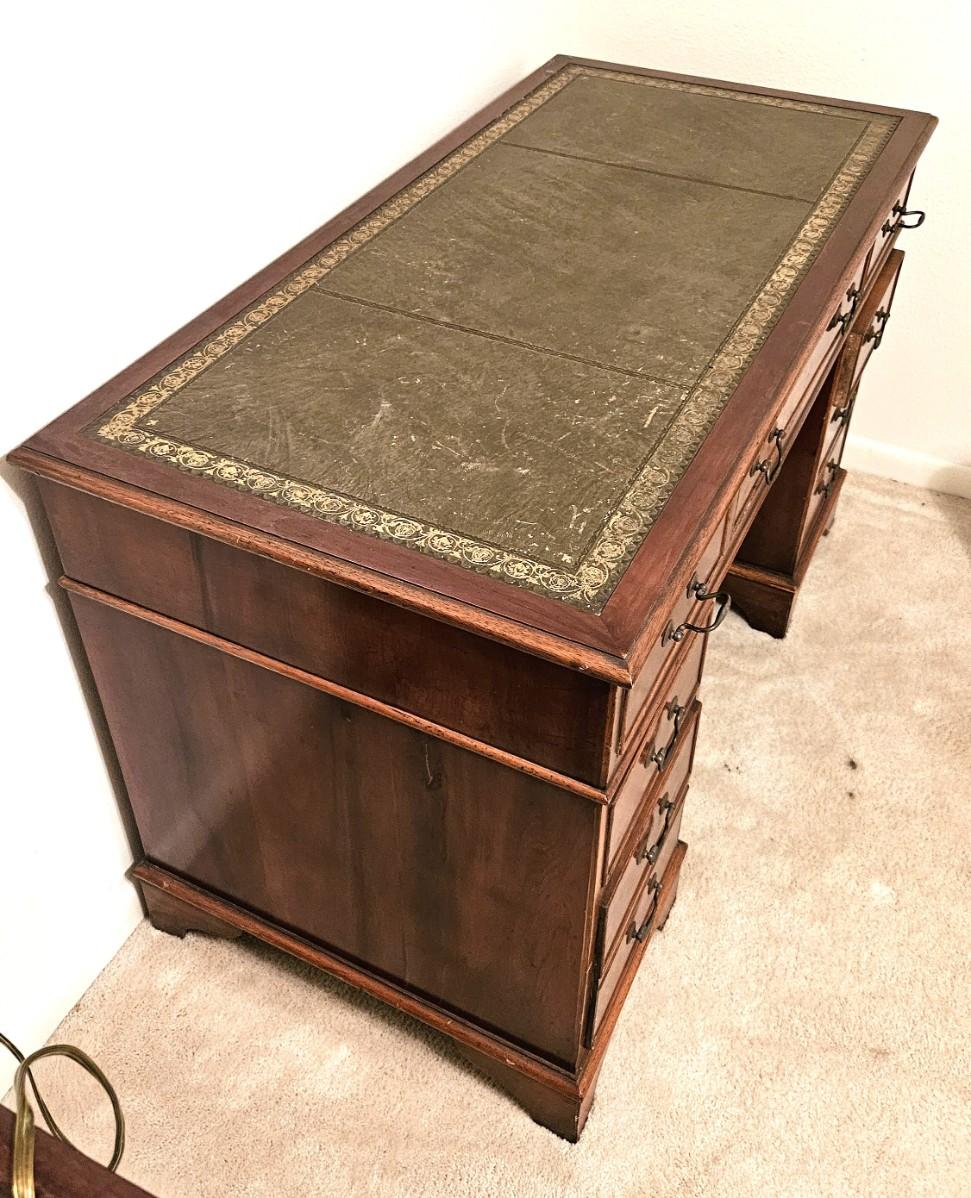 Vintage Mahogany Georgian Partners Desk with Green Tooled Leather Top including Matching Chair