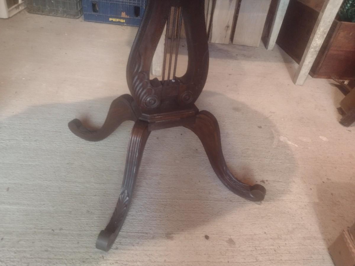 Vintage Mahogany Harp Pedestal Accent Table