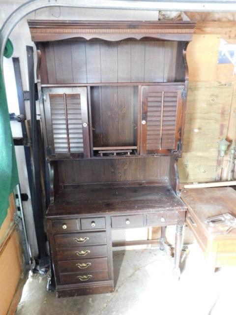 Vintage Mahogany Knee Hole Desk with Hutch Top 40"x19"x82"