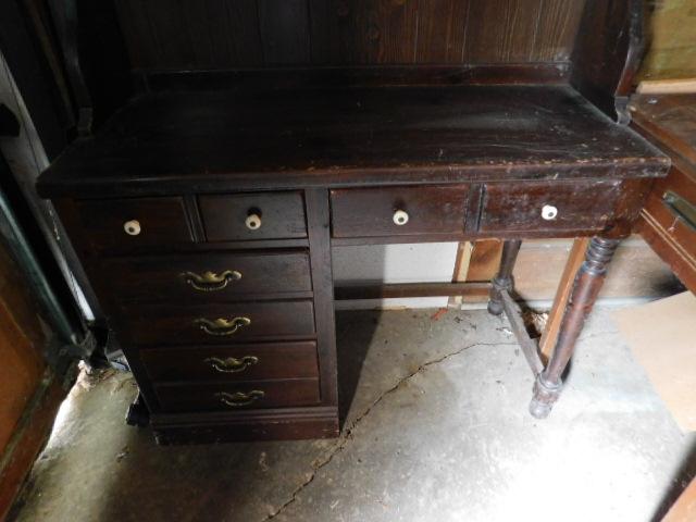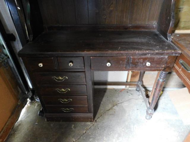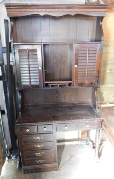 Vintage Mahogany Knee Hole Desk with Hutch Top 40"x19"x82" has wear, scratches, nicks. Ready for a great repurposing. Would make a great project piece