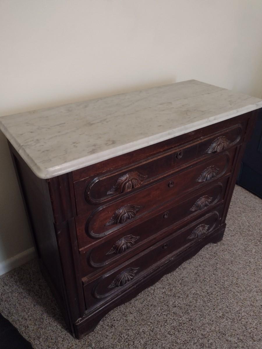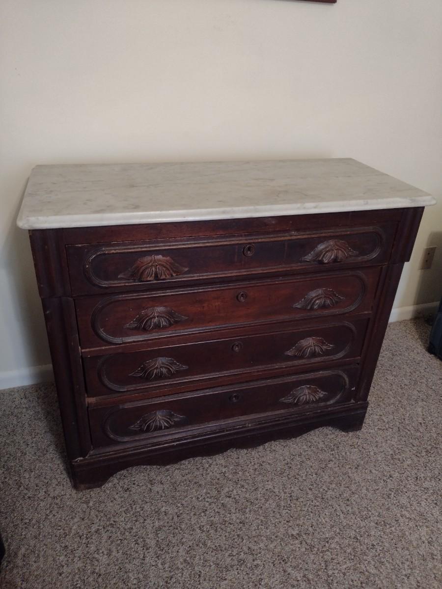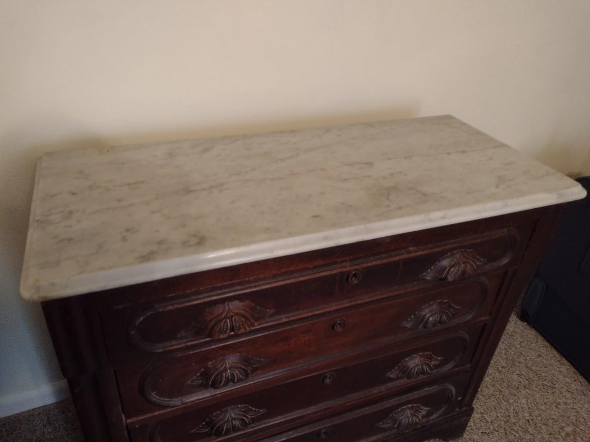 Vintage Mahogany Marble Top Four Drawer Dresser