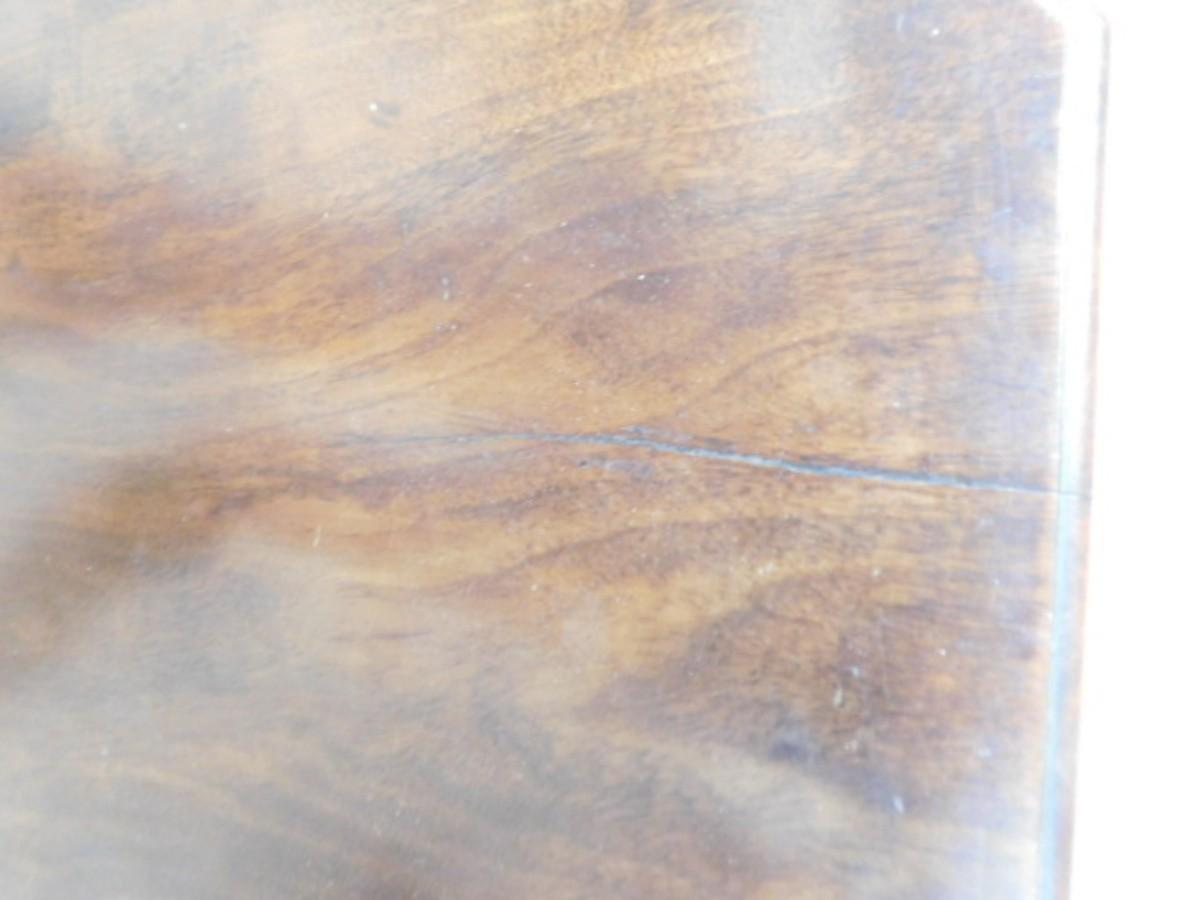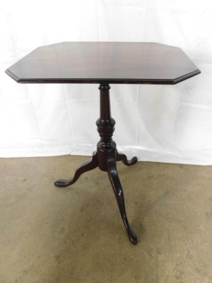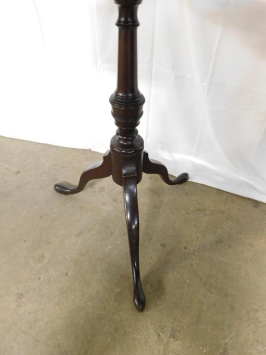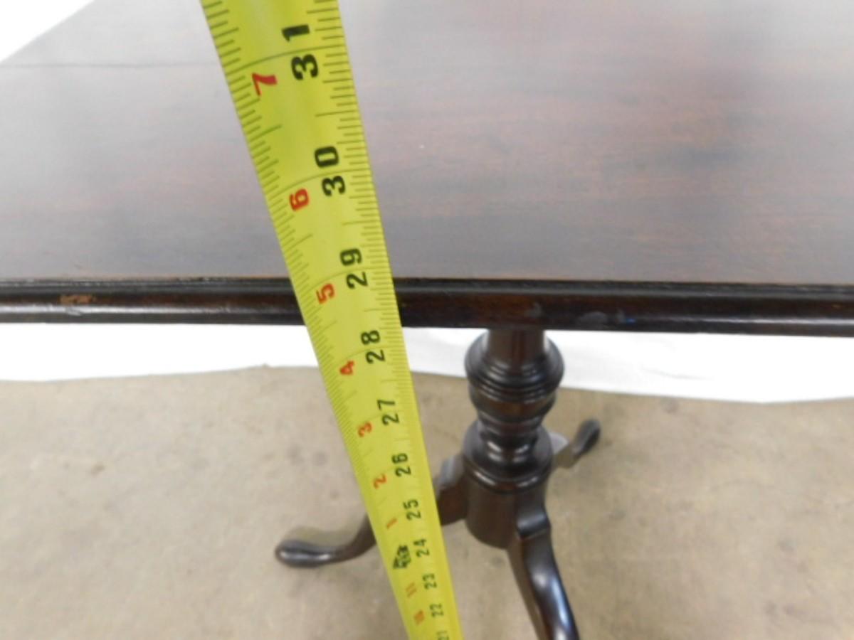 Vintage Mahogany Solid Wood Tilt Top Table has age crack on topside as shown