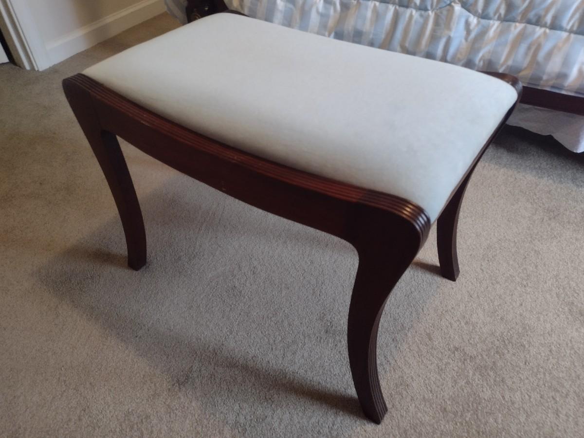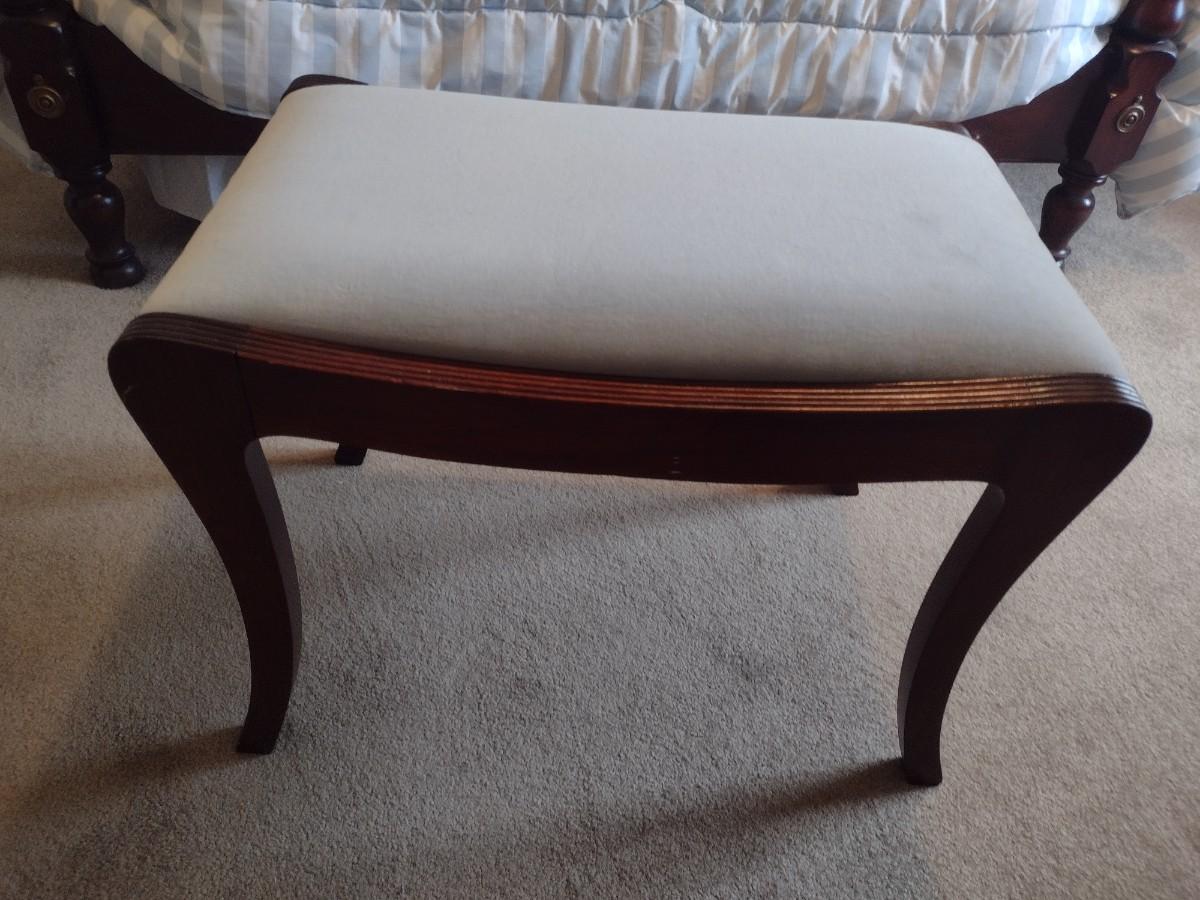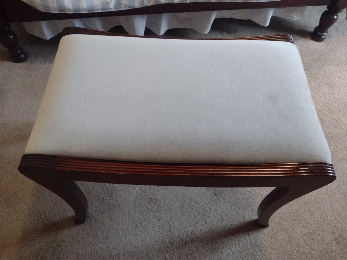 Vintage Mahogany Vanity Bench with Cushioned Seat