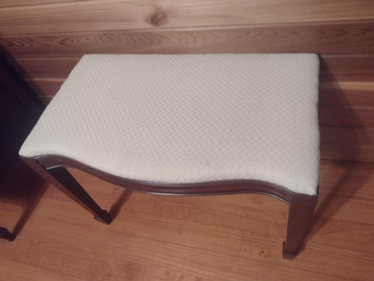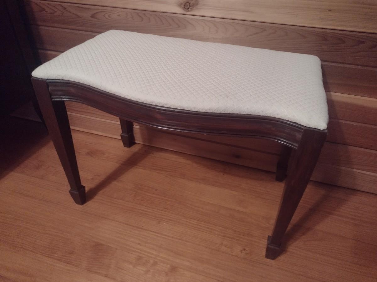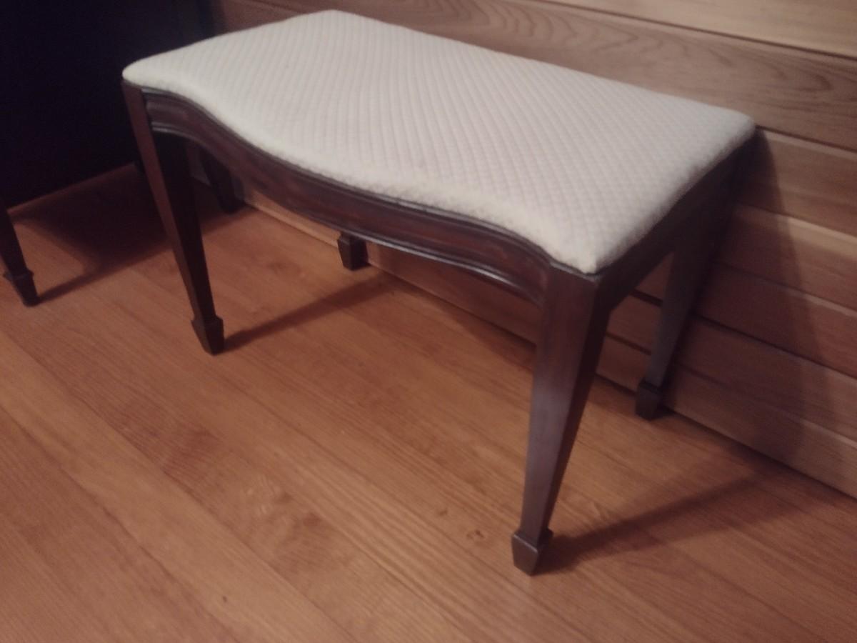 Vintage Mahogany Wood Framed Vanity Bench with Upholstered Seat