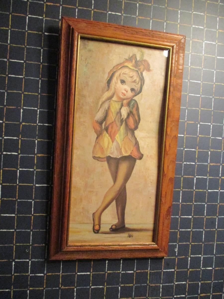 Vintage Maio Big Eye Harlequin Girl Wall Decor