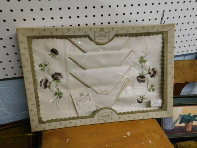 Vintage Majestic Creations 8pc Napkin and Mat Set Emboidered Linen