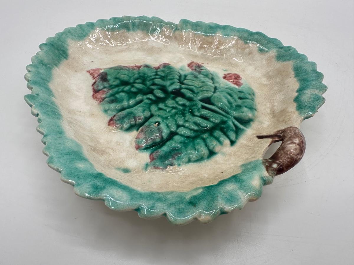 Vintage MAJOLICA Fern Leaf Dish (See Details)