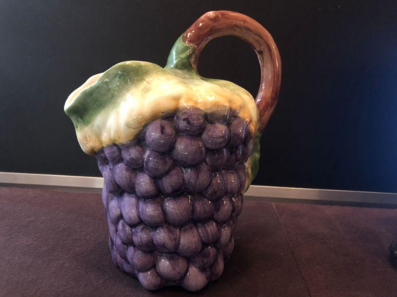BEAUTIFUL VINTAGE MAJOLICA GRAPE PTICHER MADE IN PORTUGAL 1950'S CERAMIC,