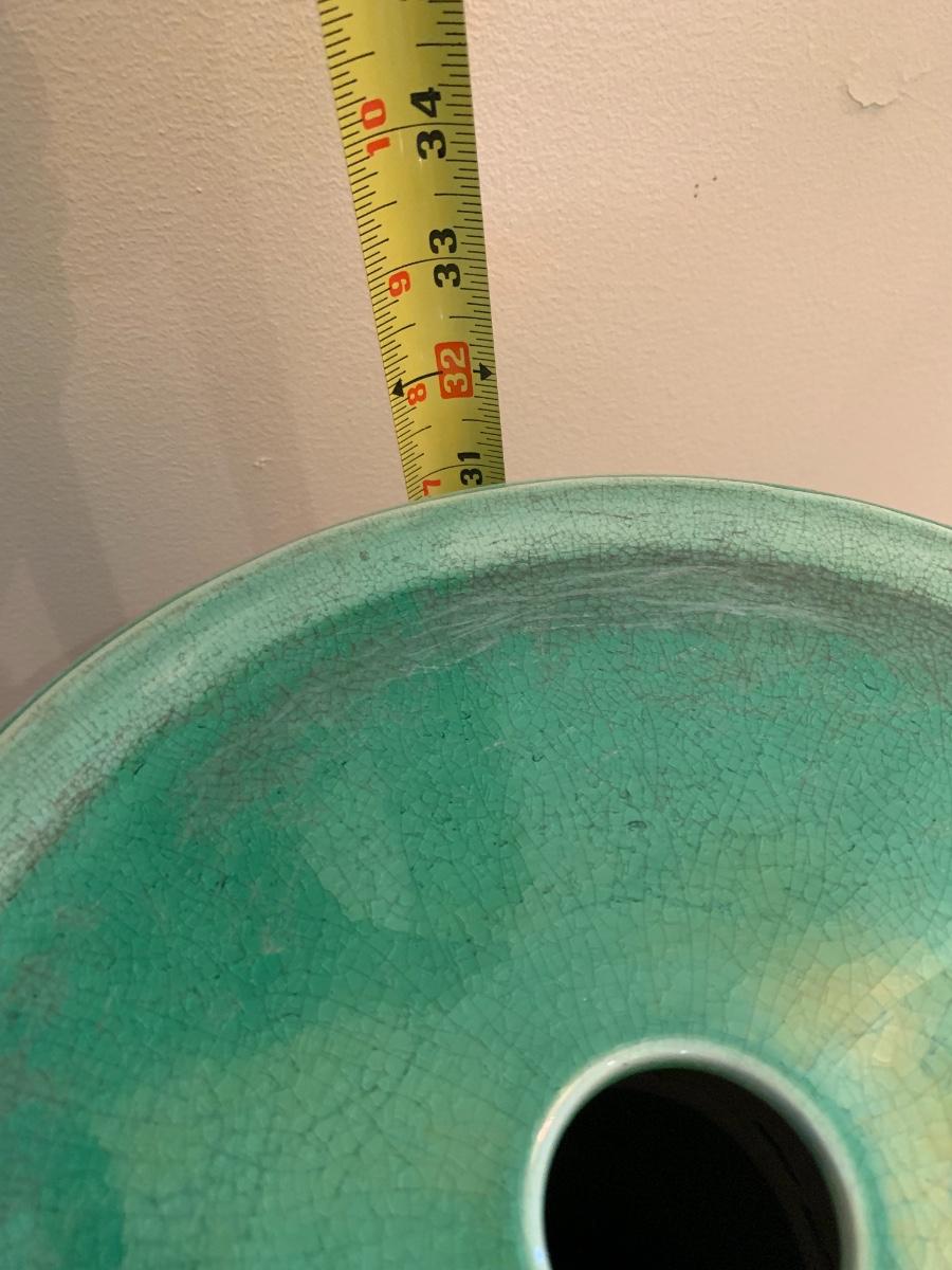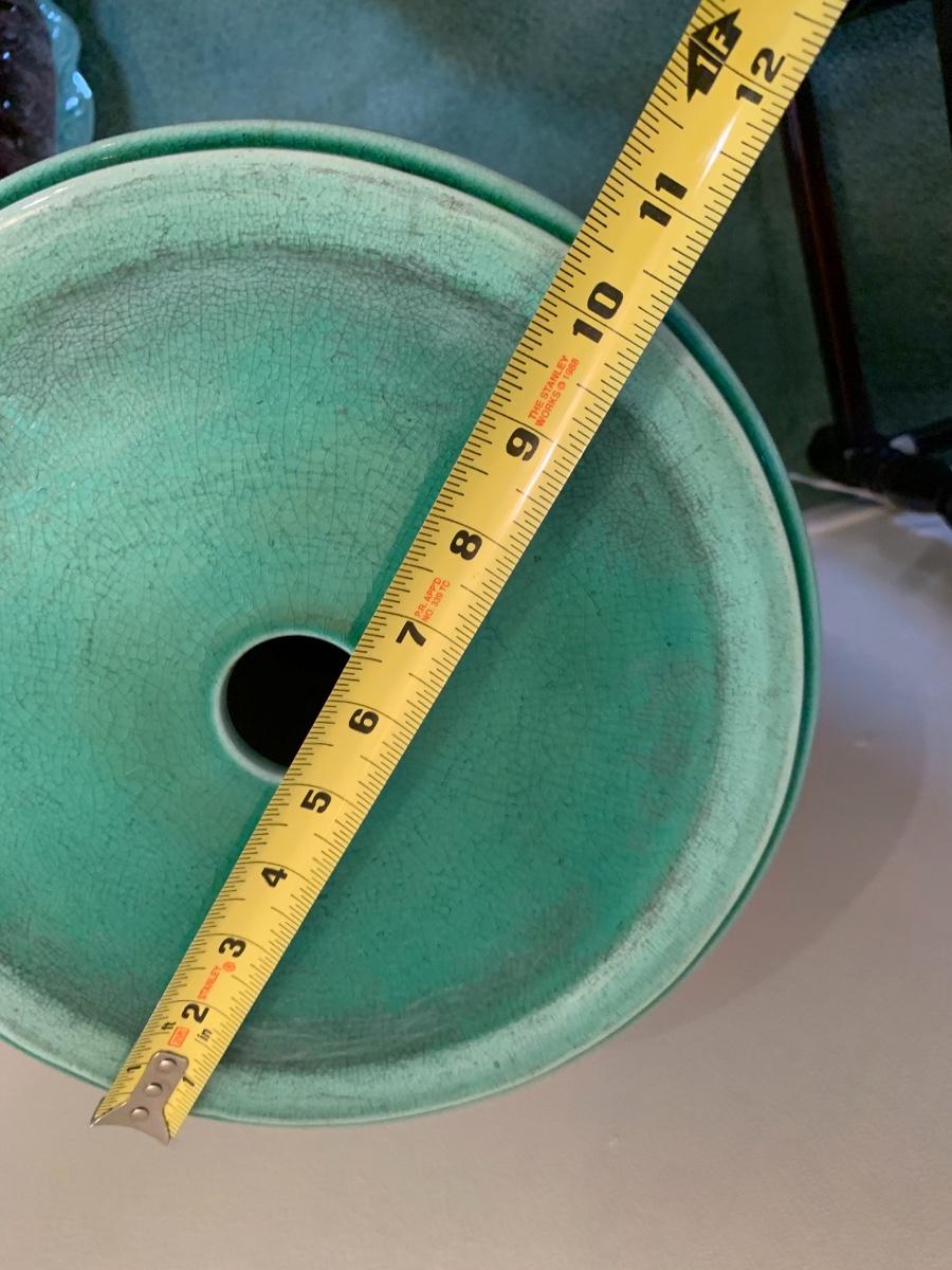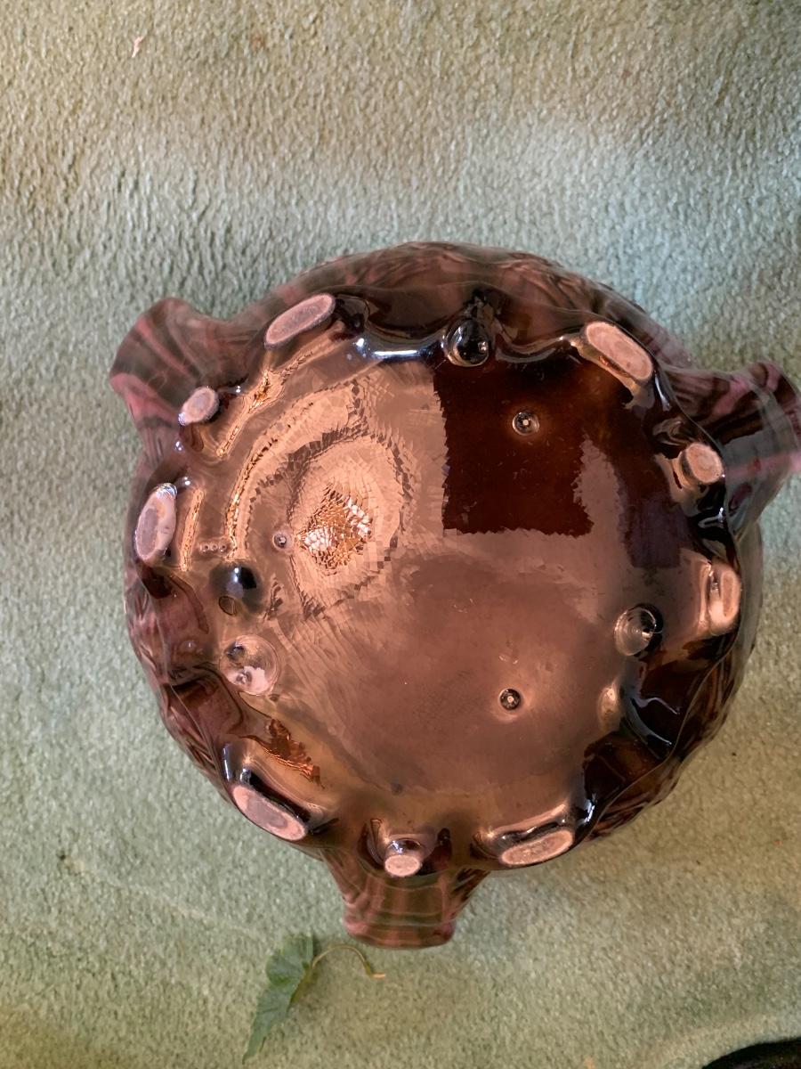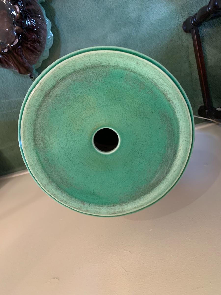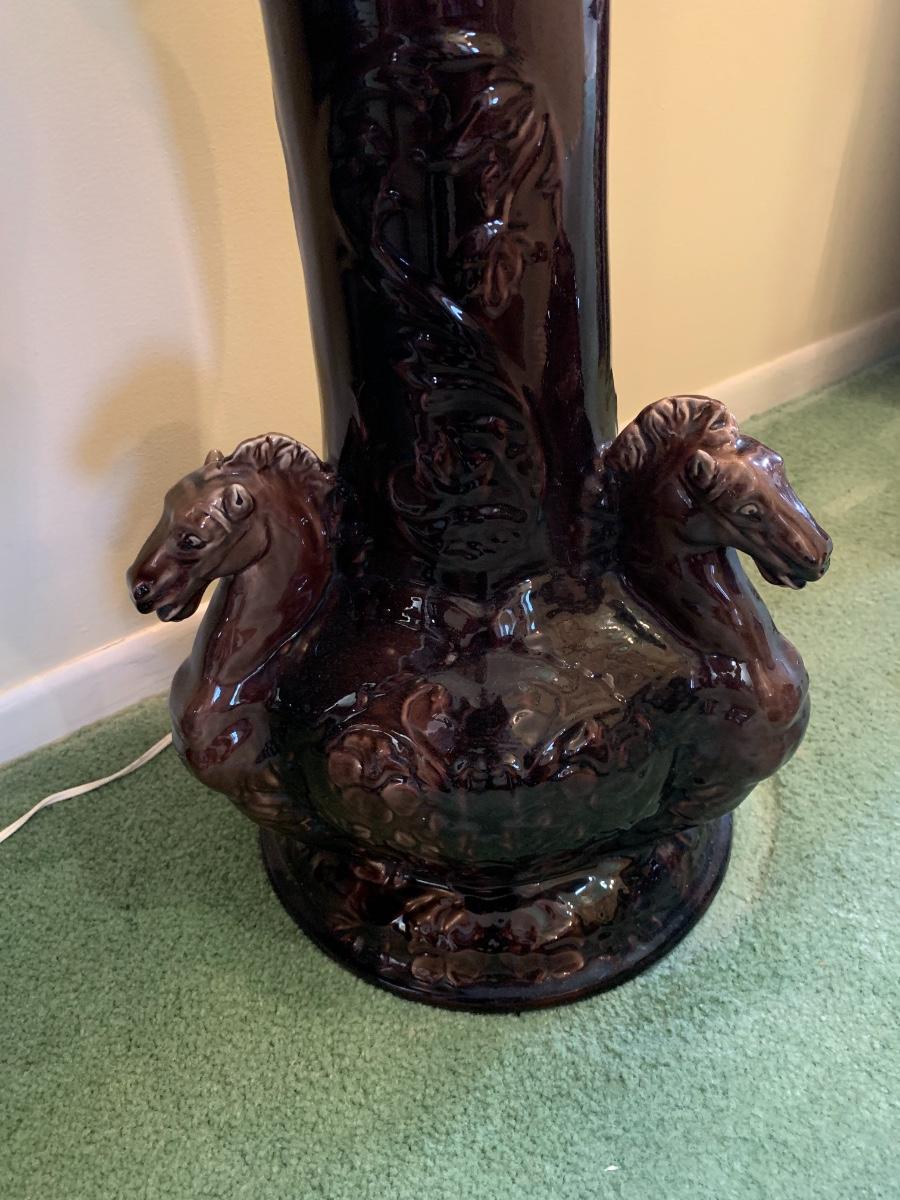 Beautiful and truly unique jardinere. Large decorative bowl rests on sseparate pedestal. This piece is in excellnet condition except for one missing horse ear as shown. No cracks .