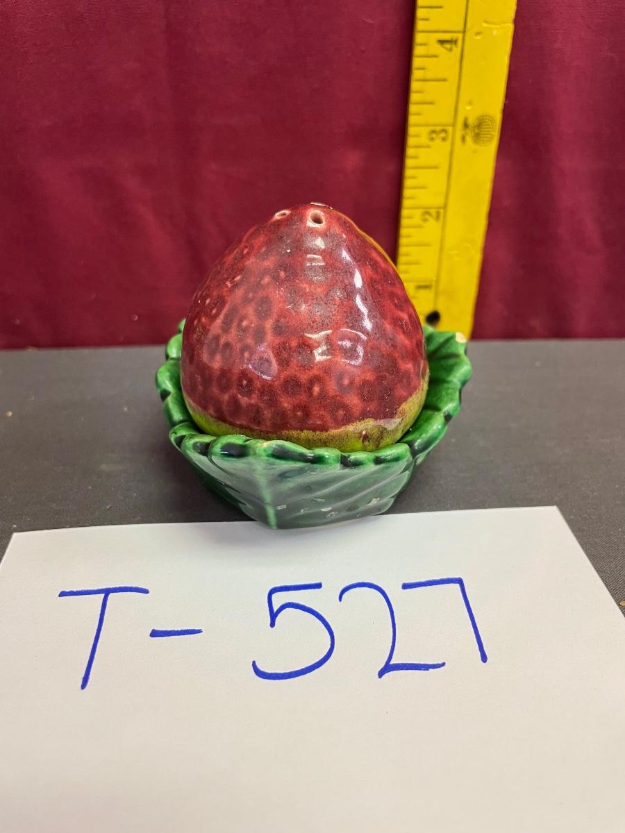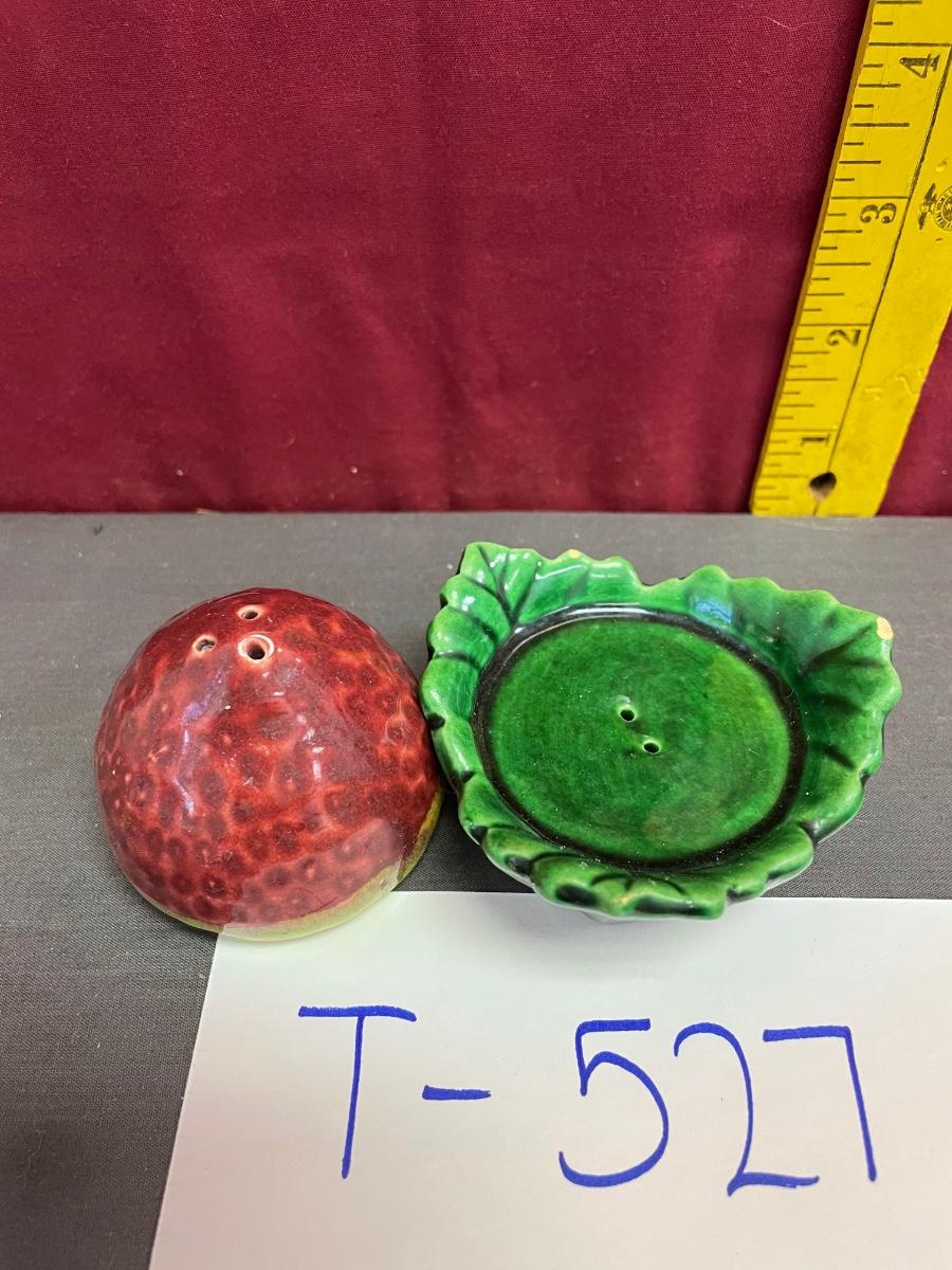 Vintage Majolica nested strawberry in leaf salt & pepper