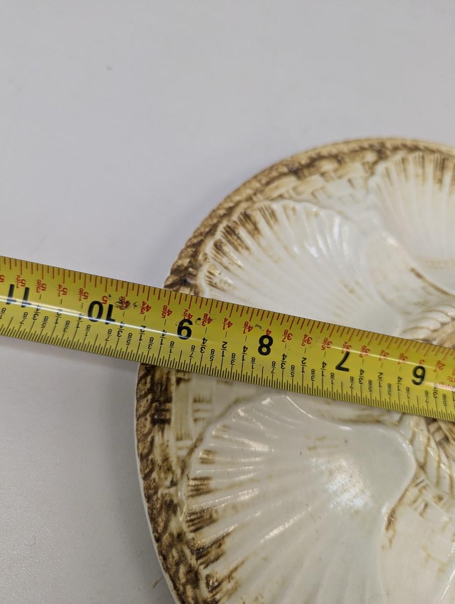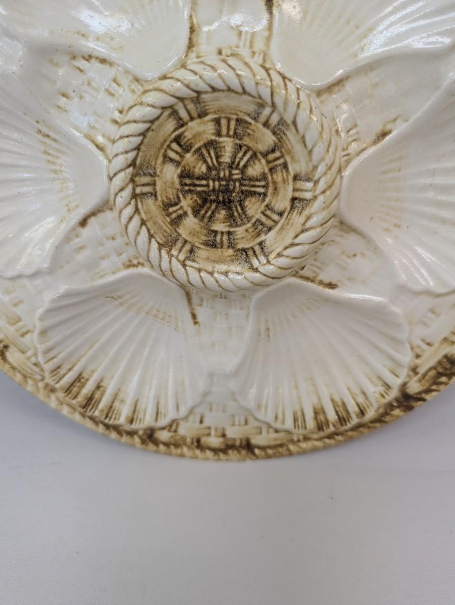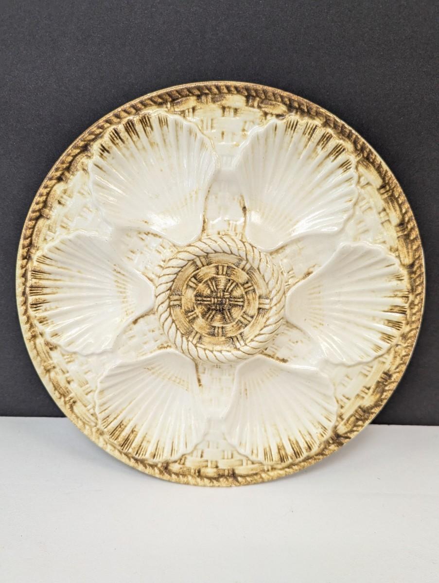 Vintage Majolica Shell Fish Oyster Plate Brown & Beige Longchamp France Approx 9 1/2" Choice 2