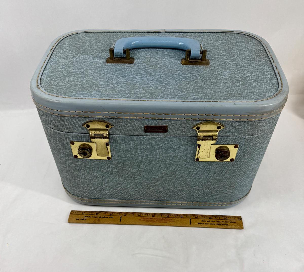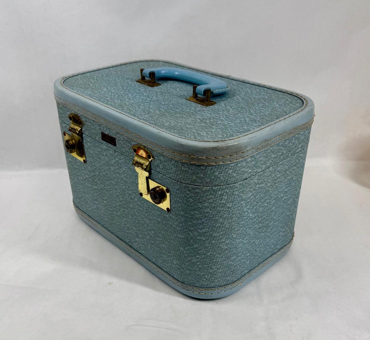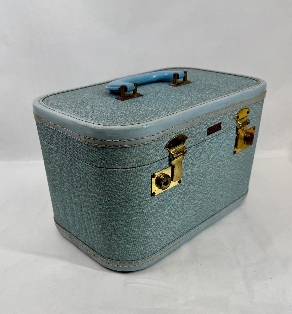 Vintage Towncraft Blue Tweed Train Case 1960's