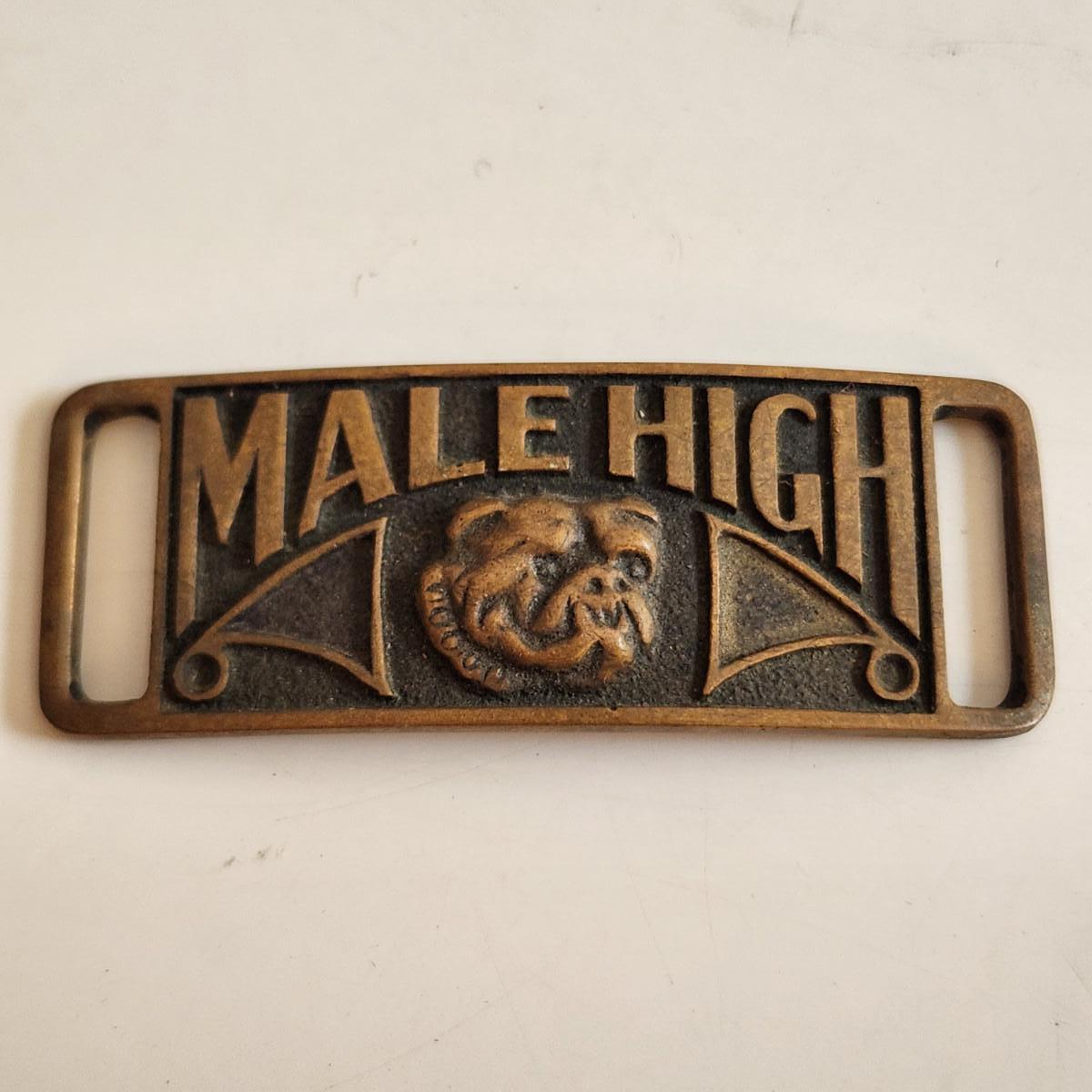 This auction lot is for a Vintage Male High School Belt Buckle. This buckle from a Louisville, KY estate appears to be from the 50's. See photo for size.