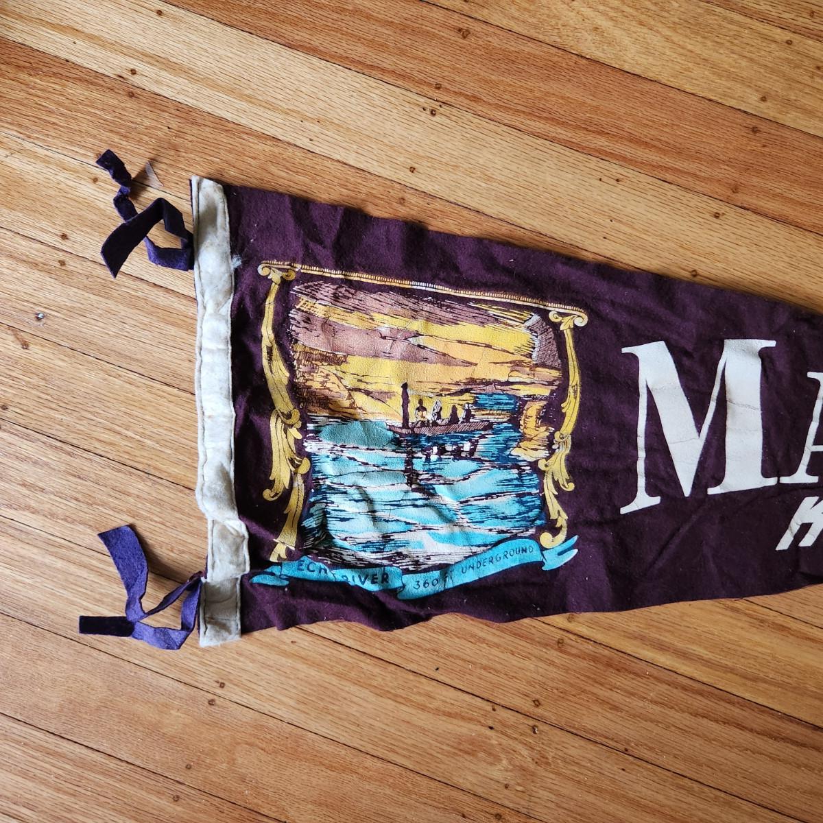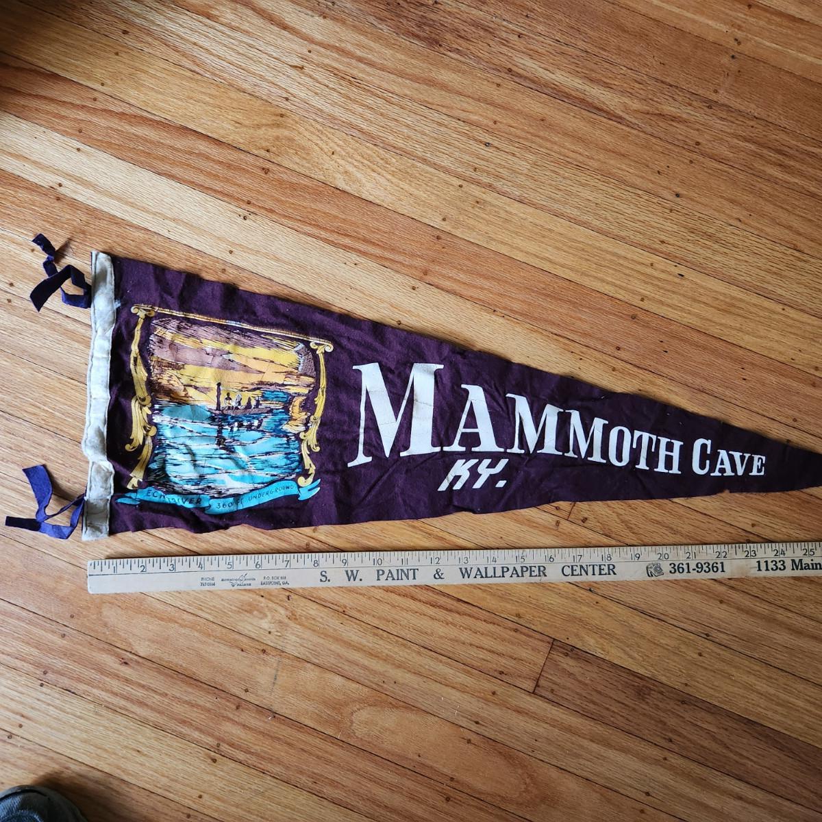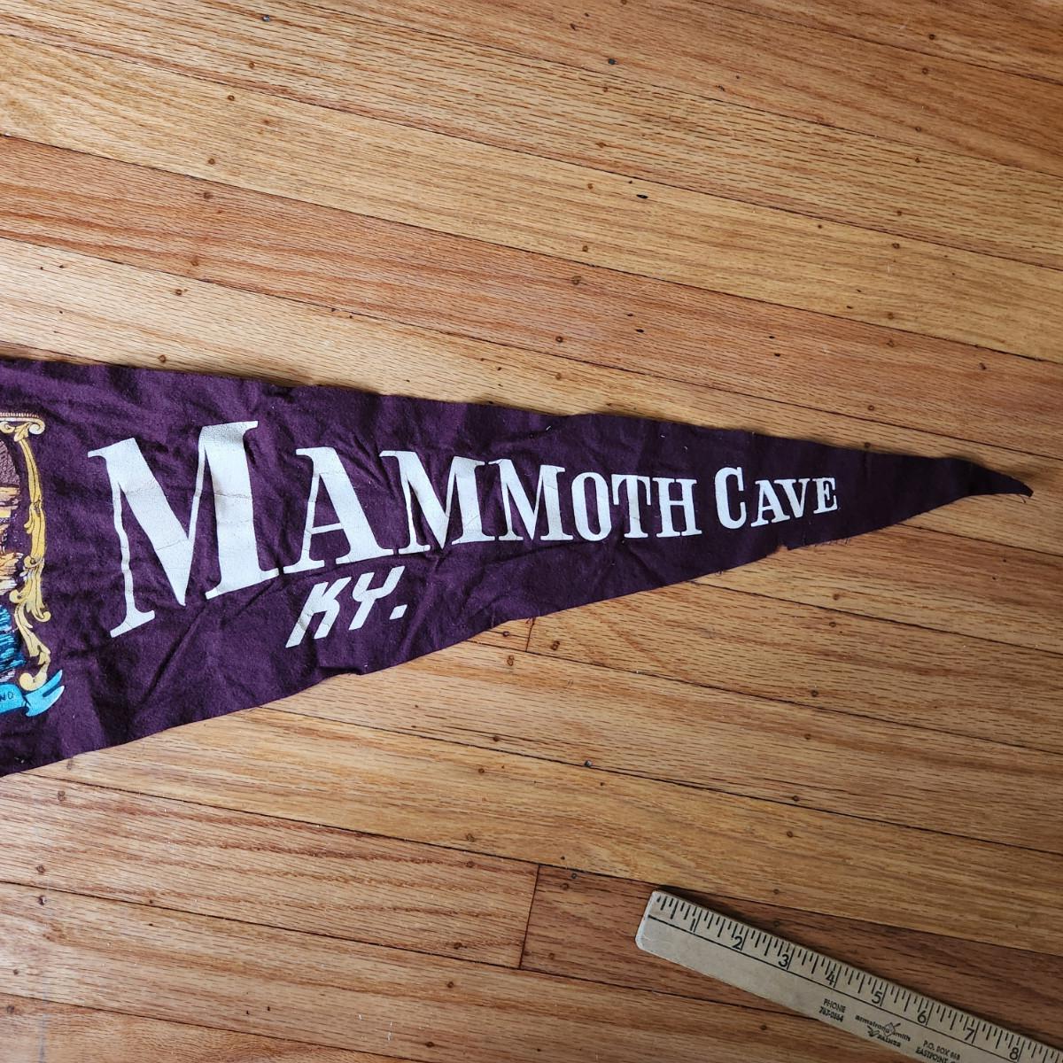 This auction lot is for a Vintage Mammoth Cave Souvenir Pendant, We found this pendant stuffed in a trunk and somewhat wrinkled - but in overall nice condition for being 75 years old. See photo for size.