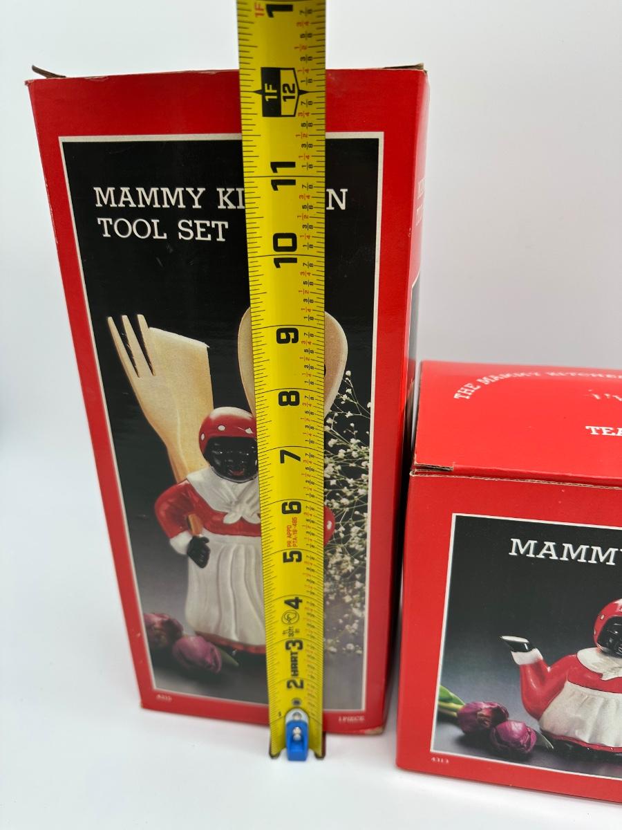 Vintage Mammy Kitchen Décor Set – Cookie Jar, Teapot & Utensil Holder – Original Boxes