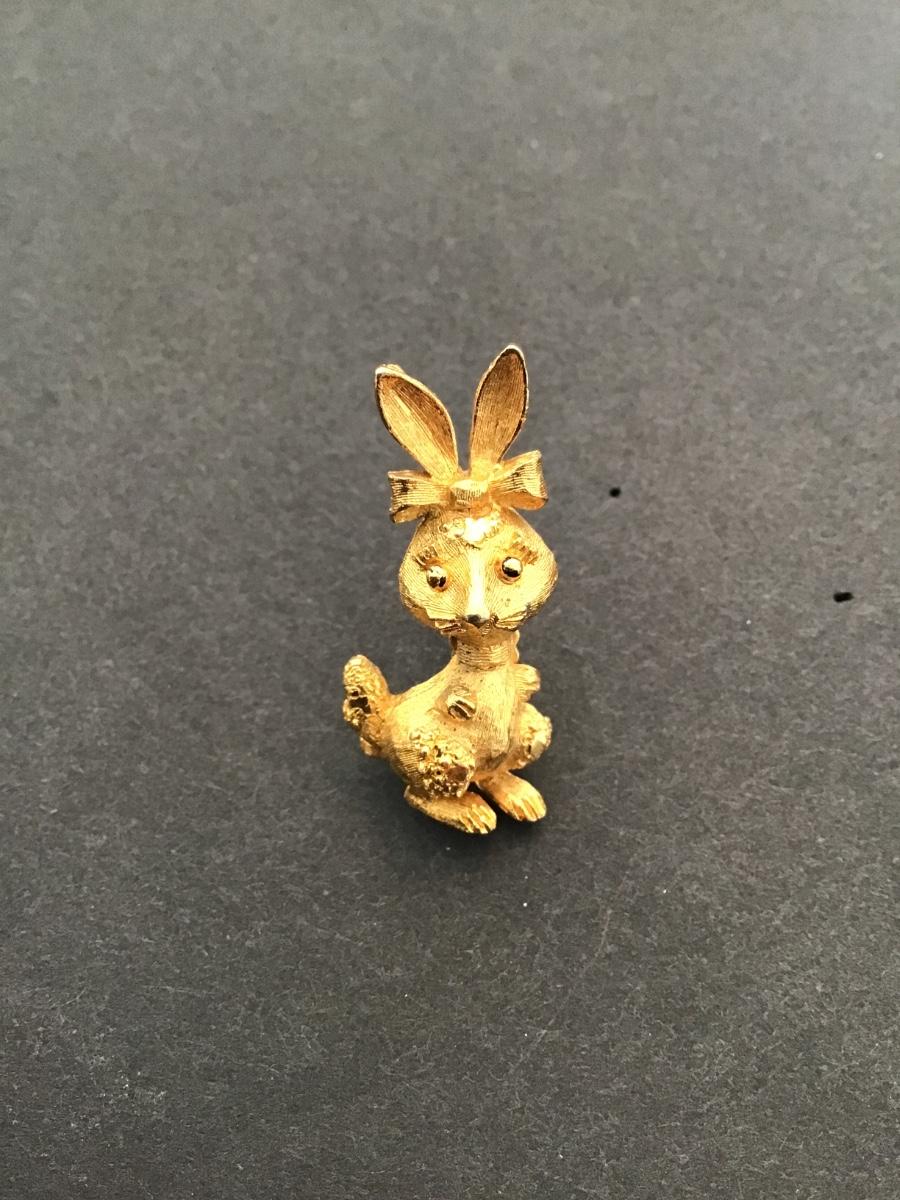 Vintage Mamselle , gold tone, bunny, brooch