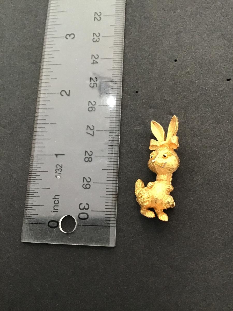 Vintage Mamselle , Gold tone bunny brooch. Please see attached photos.