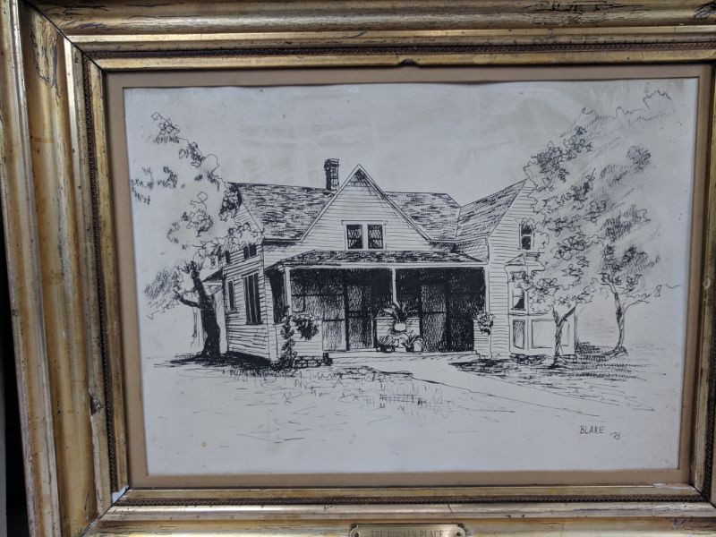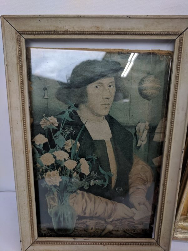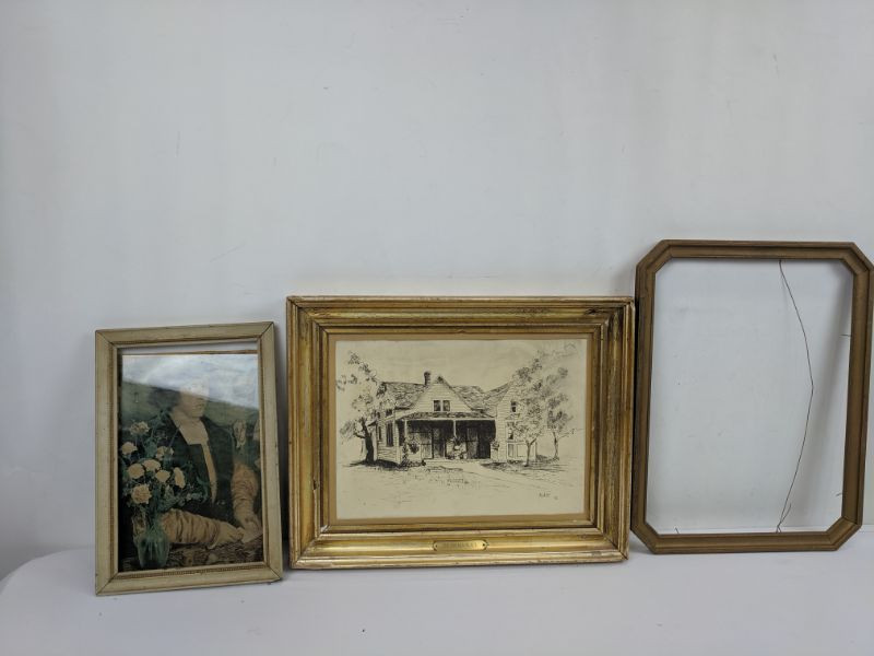 Vintage Man W/ Flowers Picture 9" x 13.5", Vintage Docken Place Picture 18.5" x 14.5", and Vintage Wooden Frame 13.75" x 17.75"