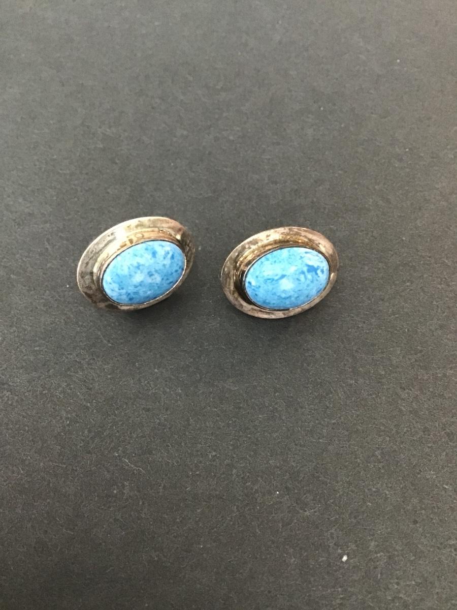 Vintage, Many goats, sterling, silver stone earrings, Navajo vintage