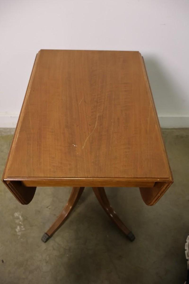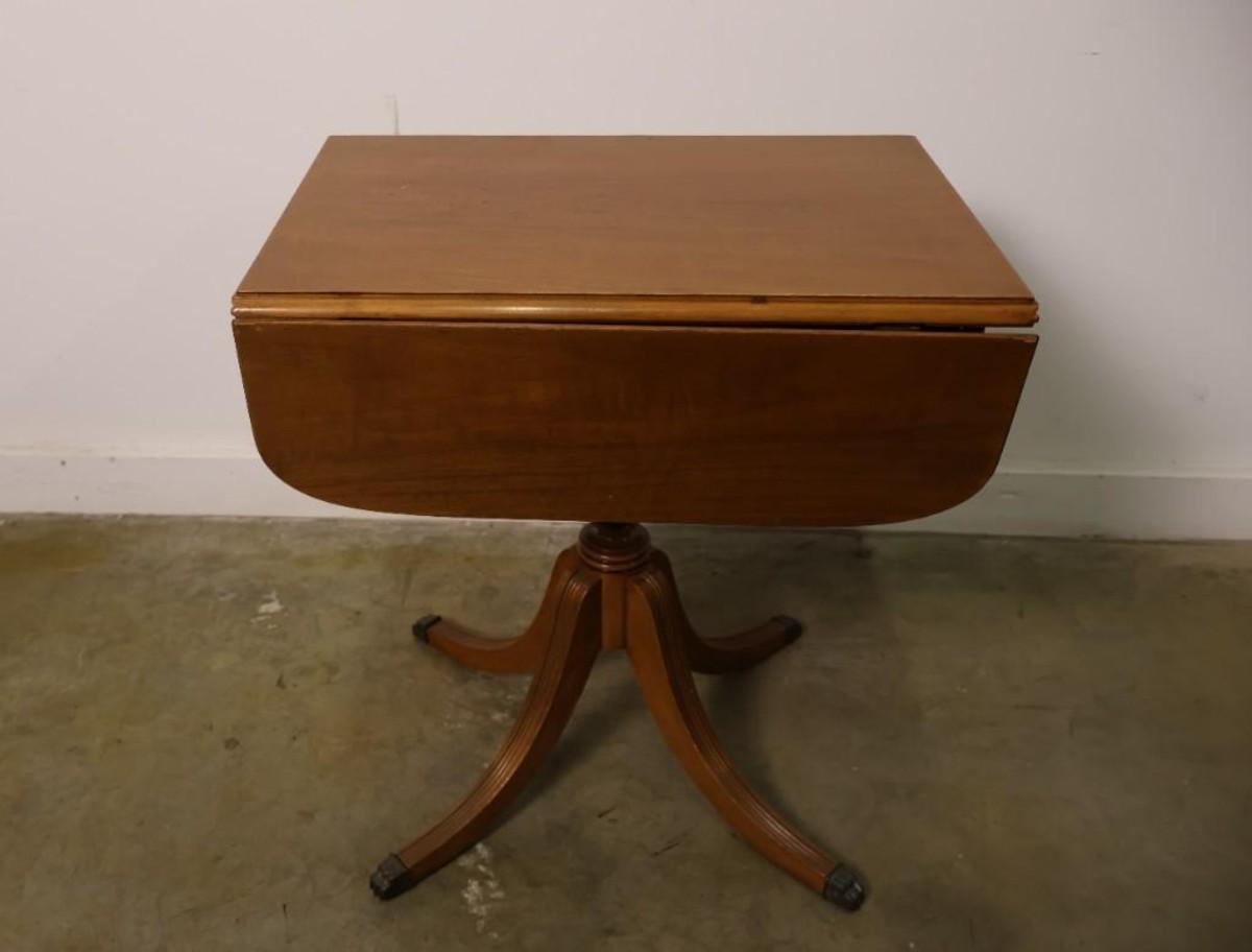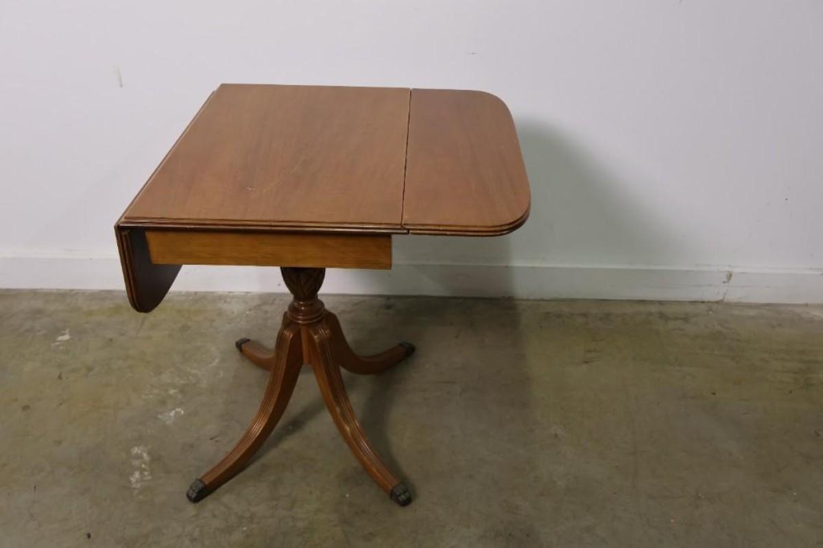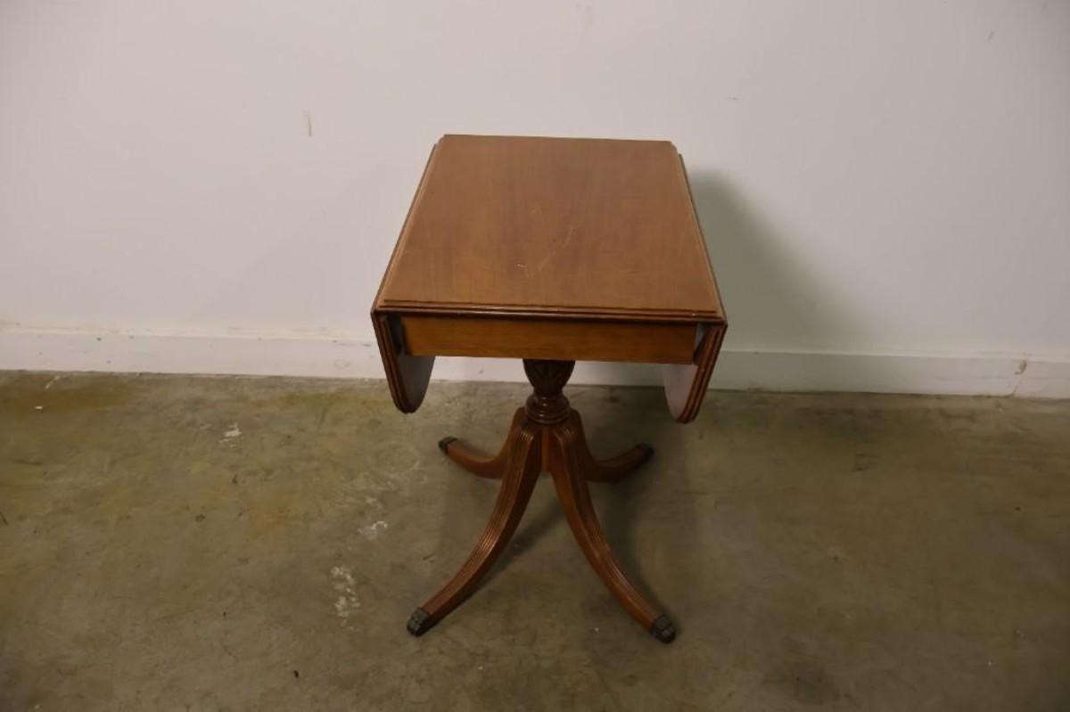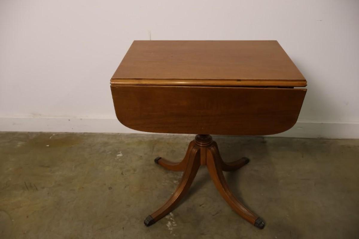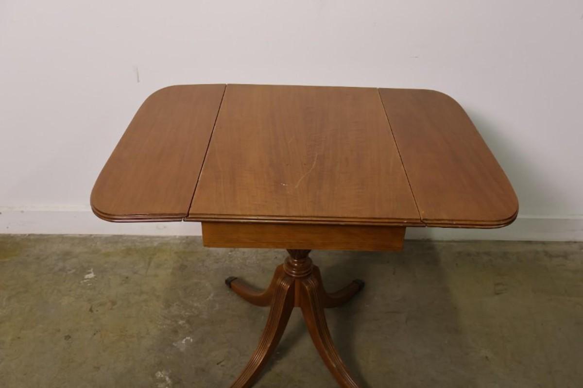 Vintage Maple Drop Leaf Pedestal Side Table