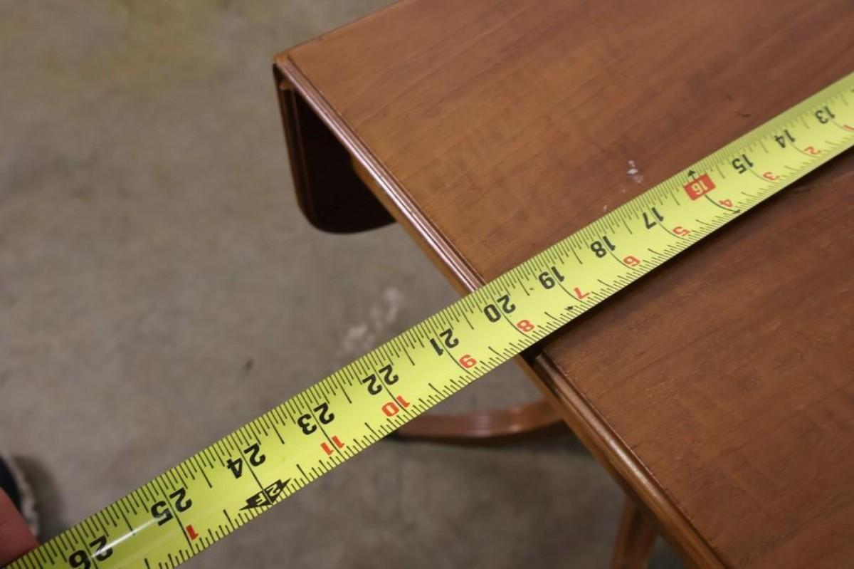 Vintage Maple Drop Leaf Pedestal Side Table.  14" wide (26 1/2" with leaves fully extended) x 20" deep x 22" high.  Has some minor scratching on the top.