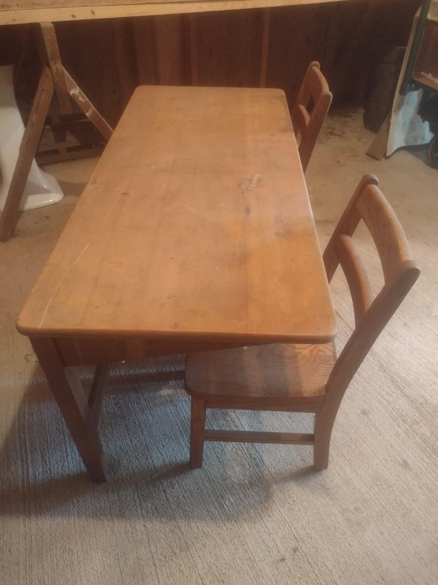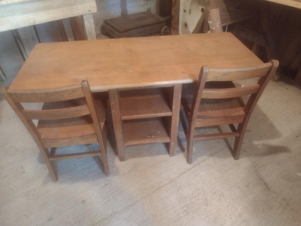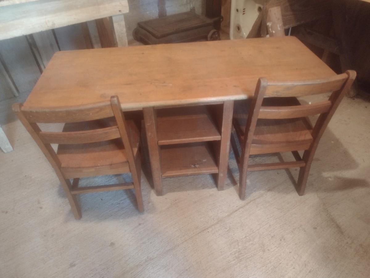 Vintage Maple Solid Wood Double Knee Hole Child's Library Table with Oak Chairs