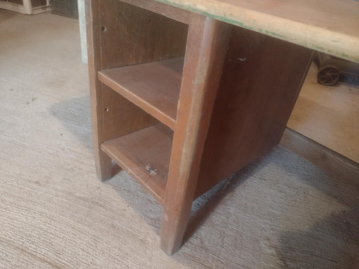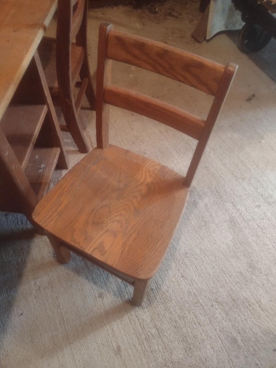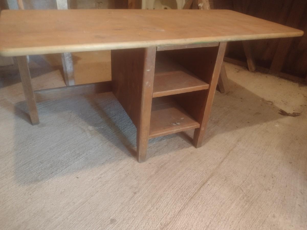 Vintage Maple Solid Wood Double Knee Hole Child's Library Table with Oak Chairs