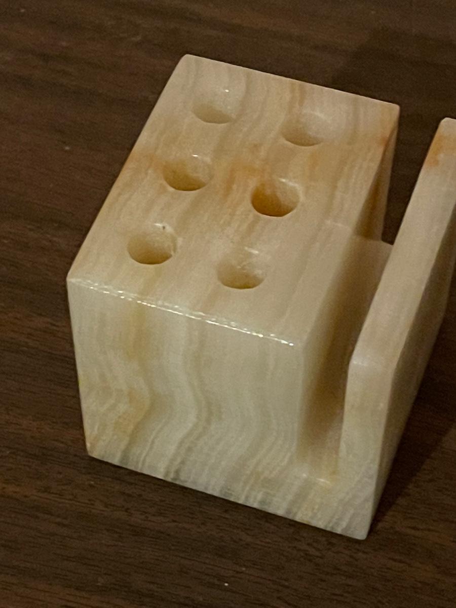 Vintage Marble Stone Pen Pencil Holder with Business Card Desk Accessory