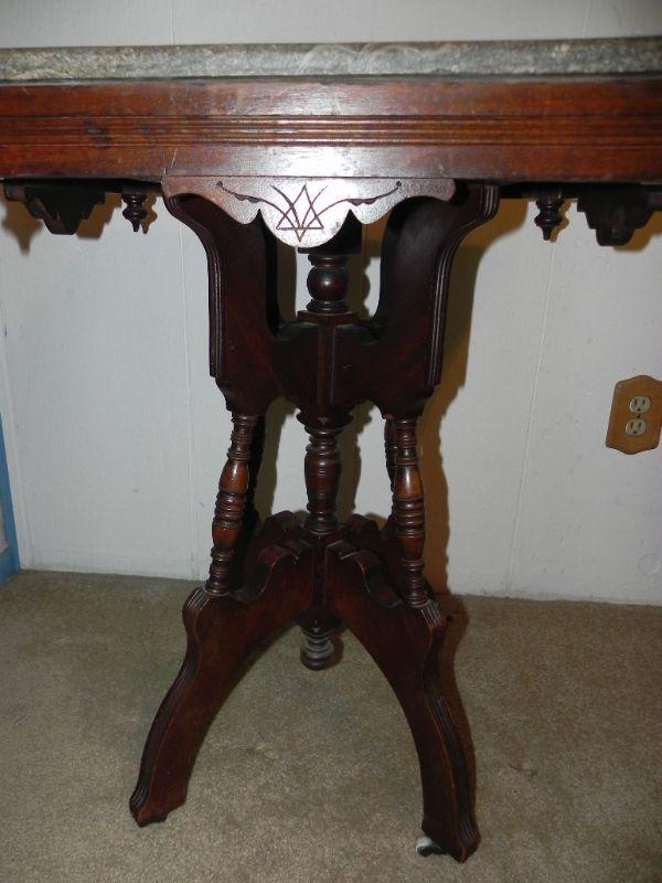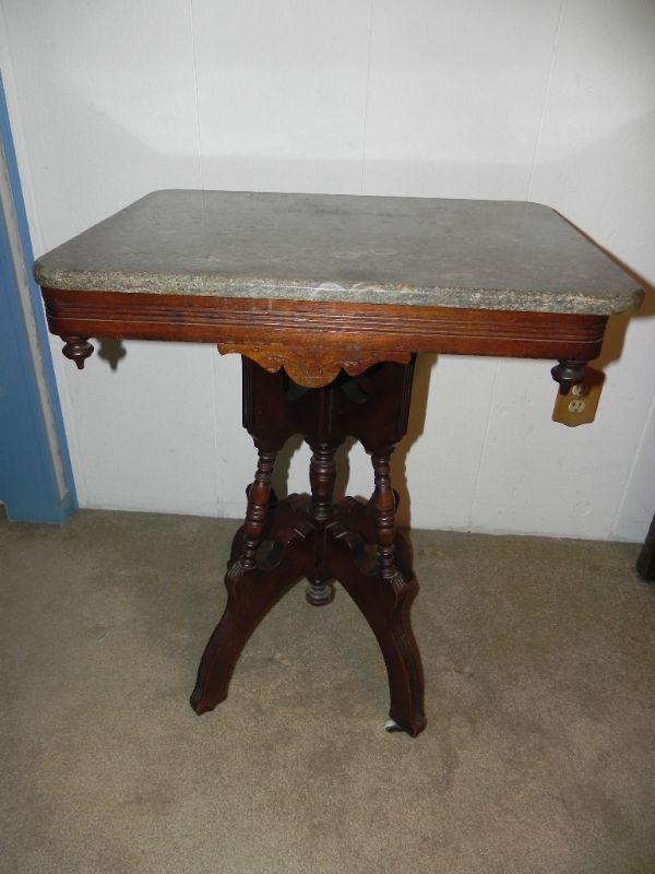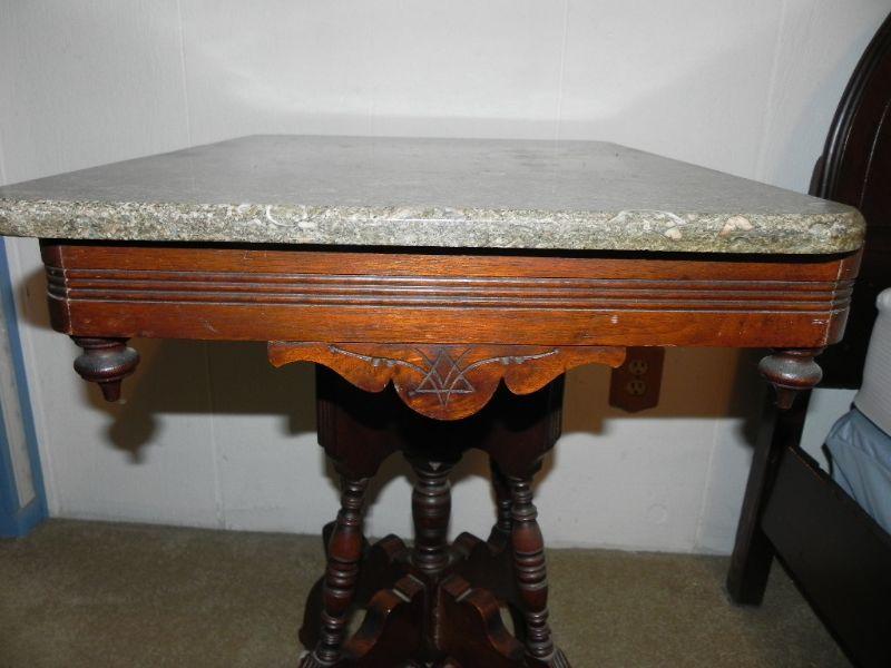 LOT 3 Antique Marble Top Side Table