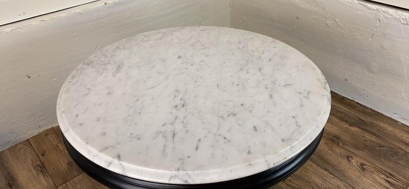 Marble top. Painted wood base.