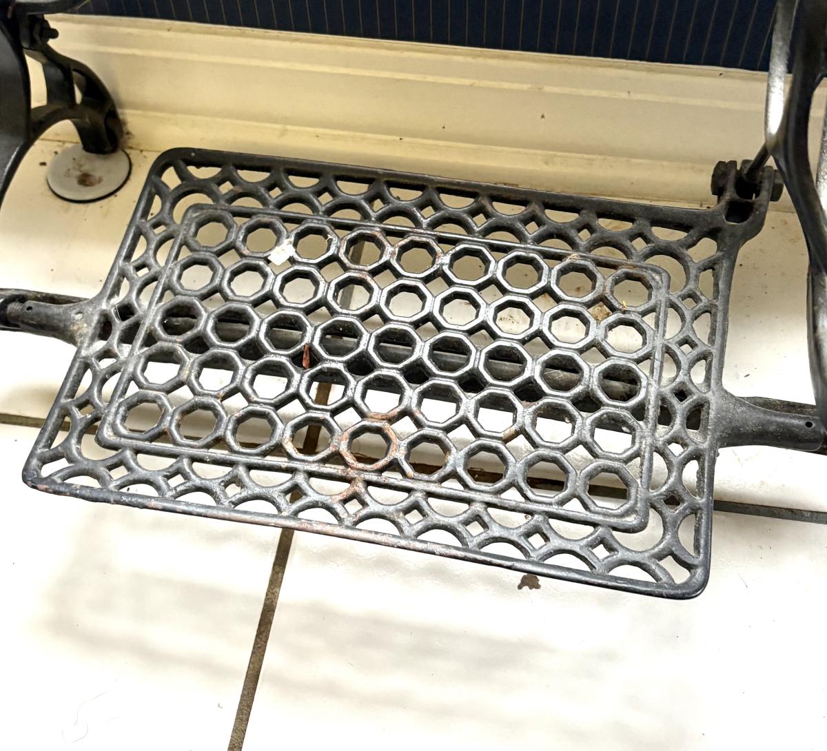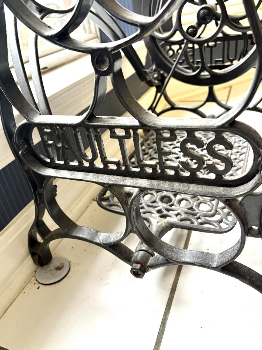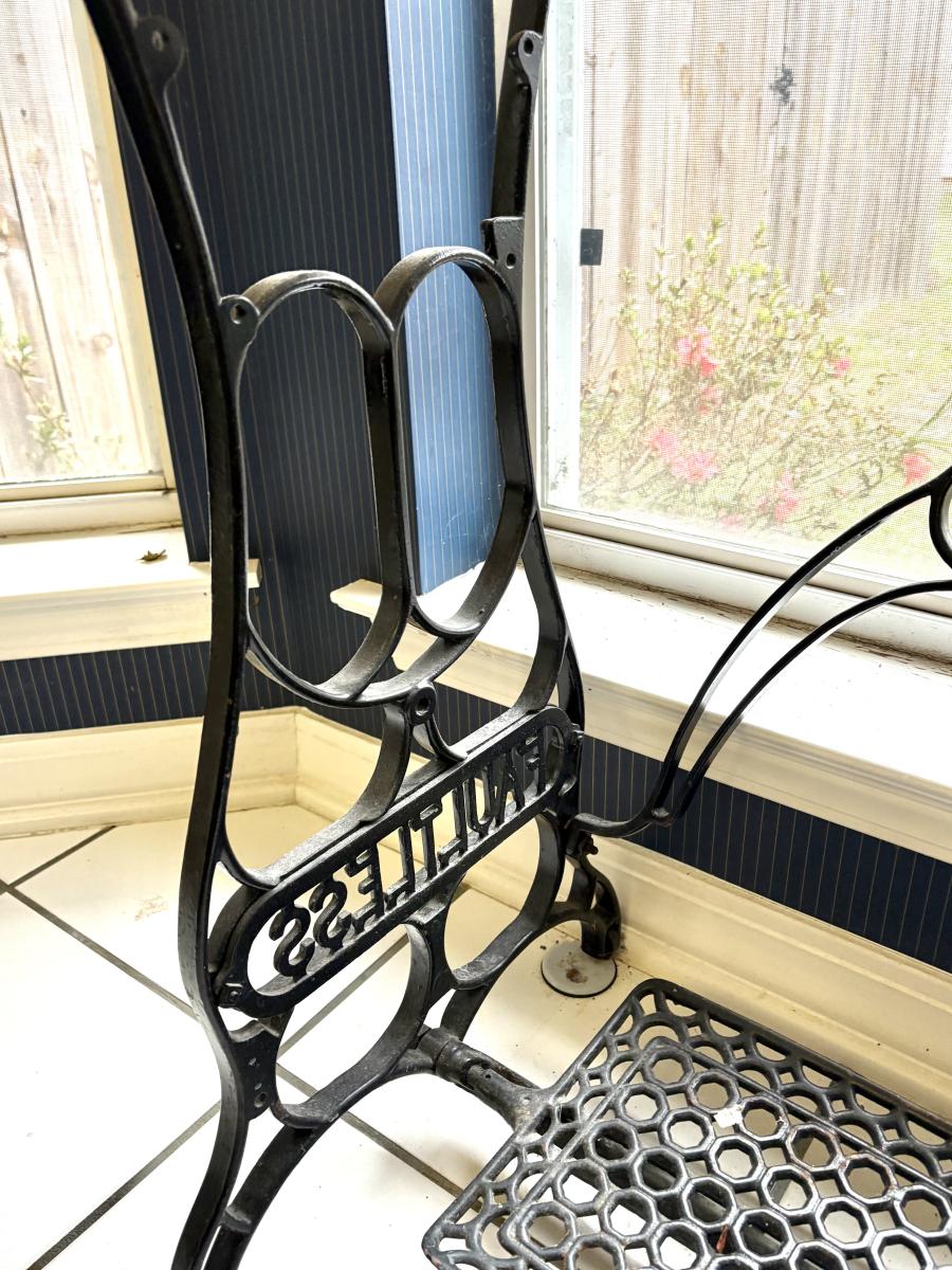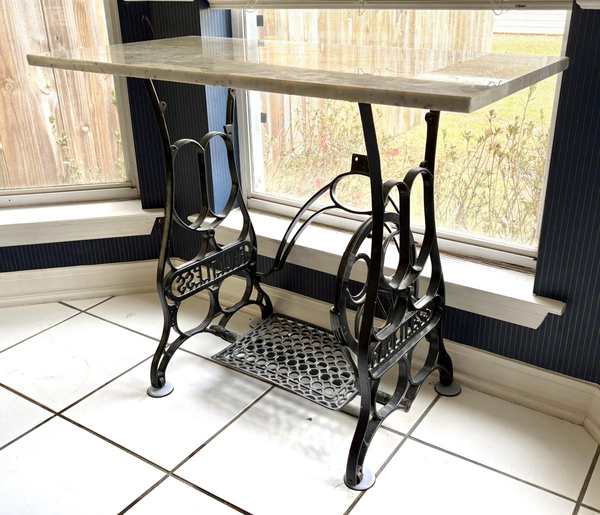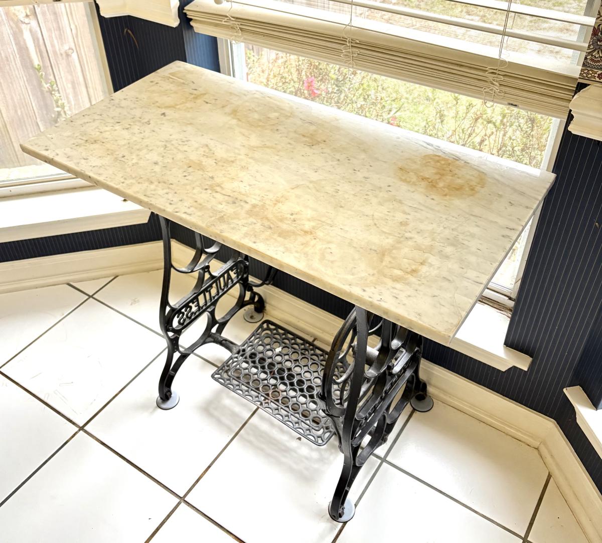 Vintage "FAULTLESS" Wrought Iron Sewing Base with Marble Top