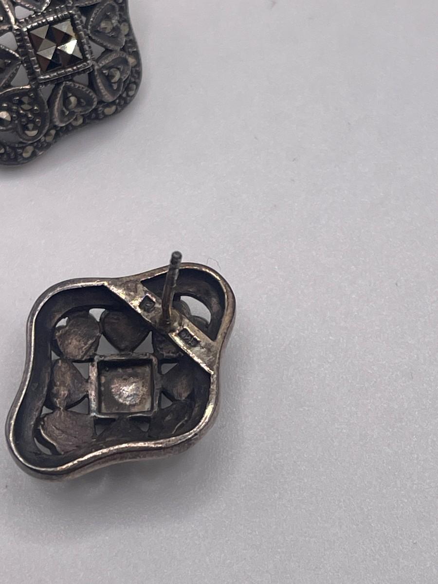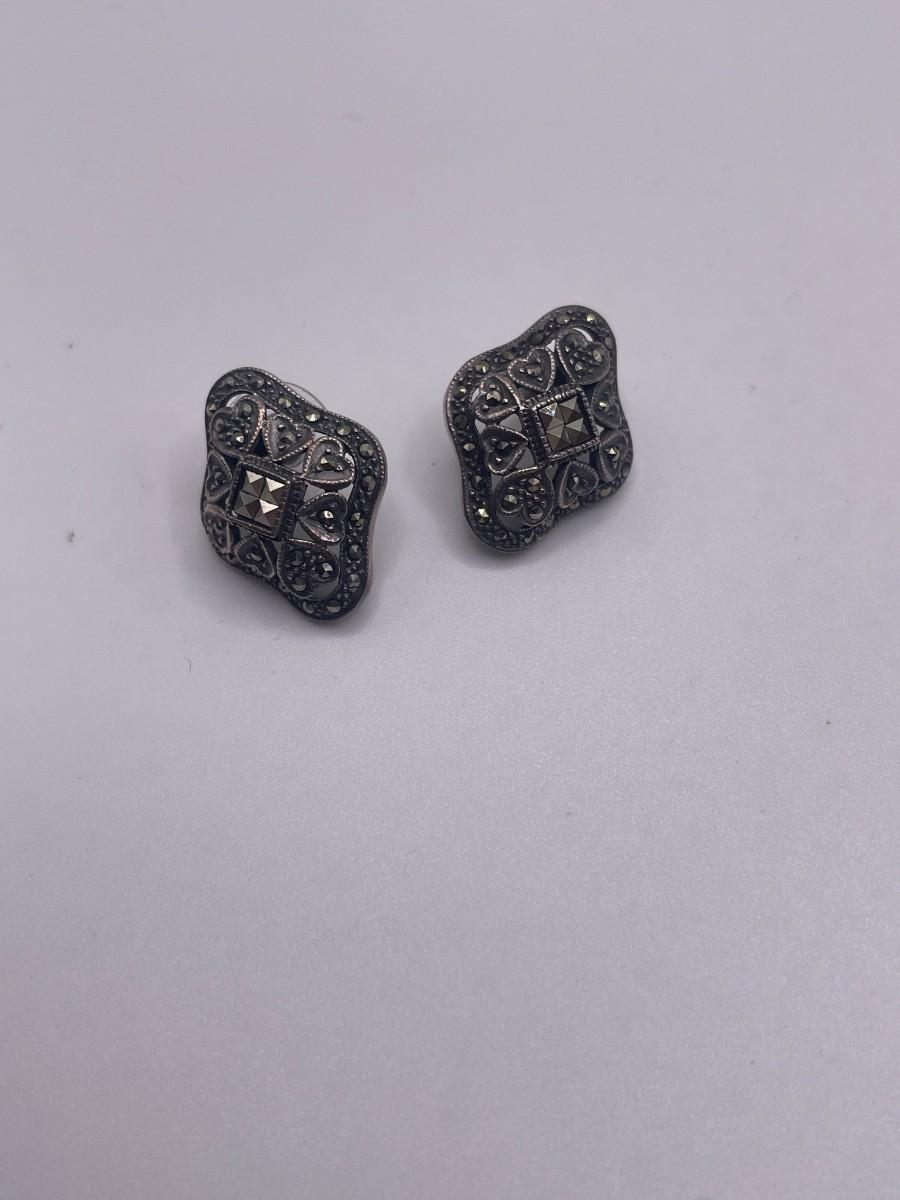 Vintage sterling silver earrings with marcasite. marked 925. Approx 1"