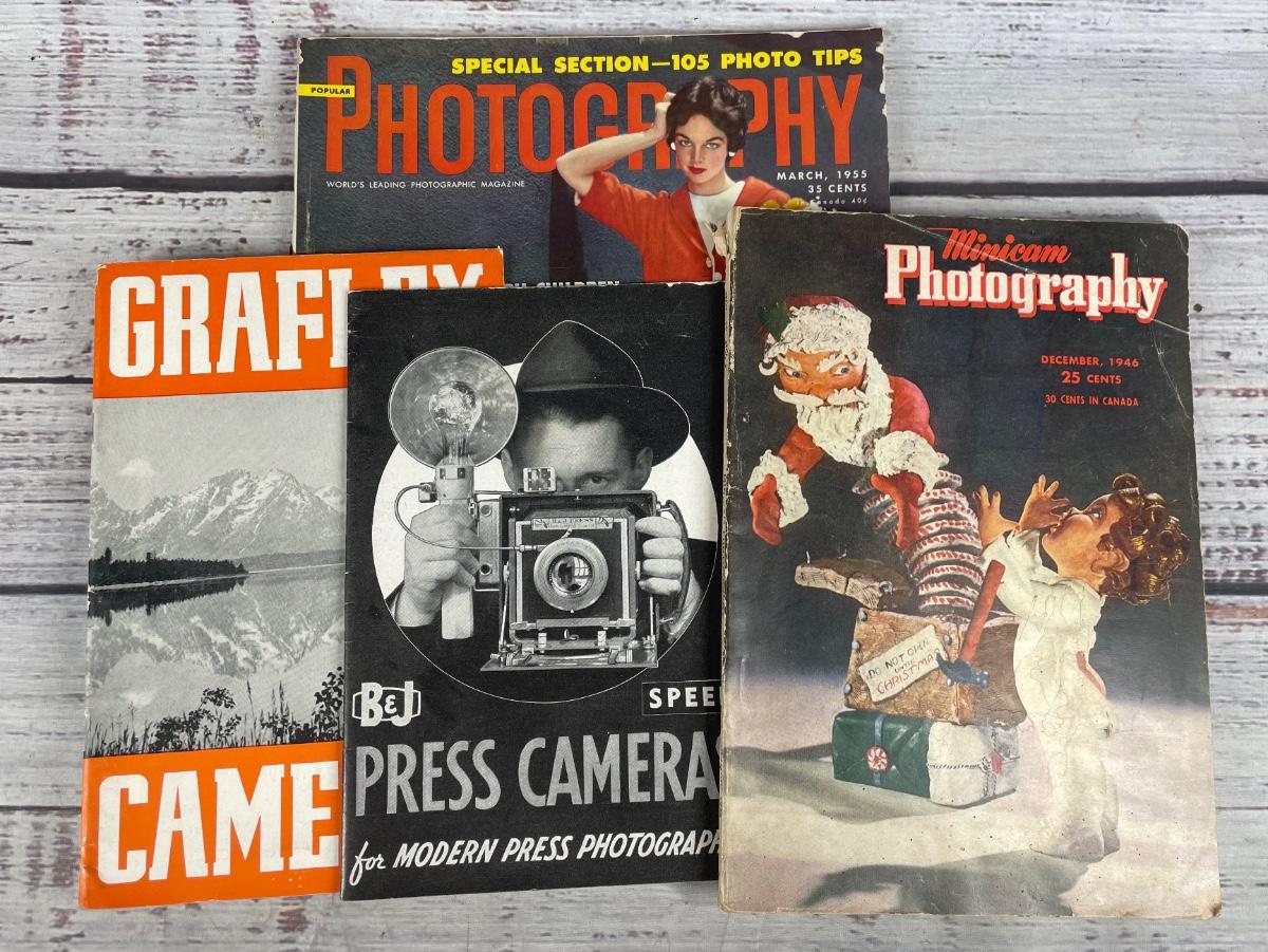 Vintage March 1955 Photography Magazine, Graflex Cameras Magazine, Press Camera Magazine & December, 1946 Minicam Photography Magazine