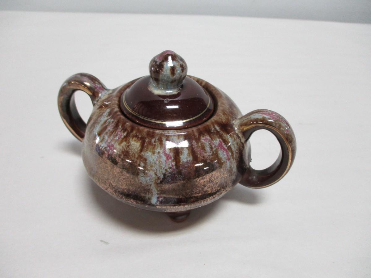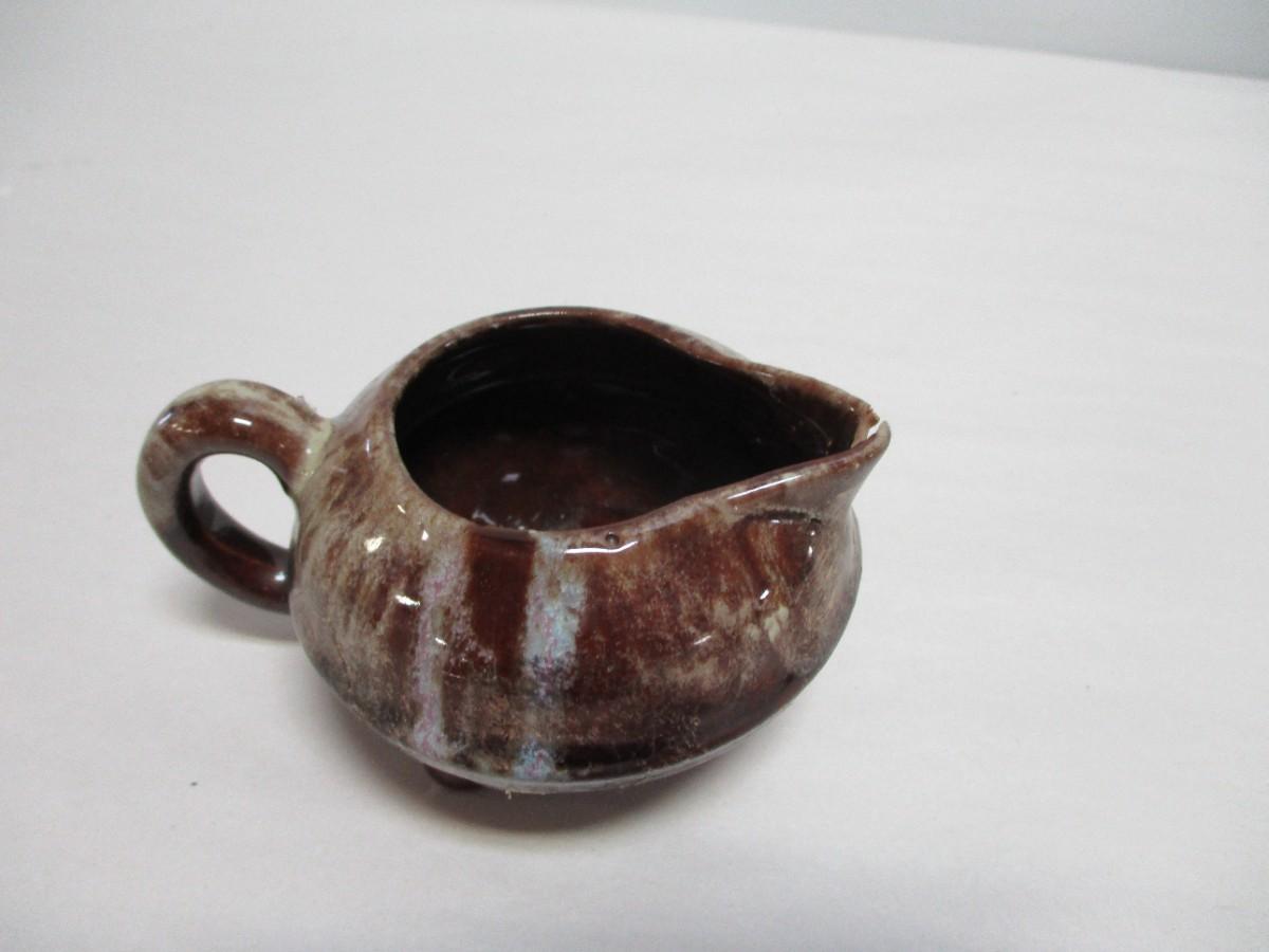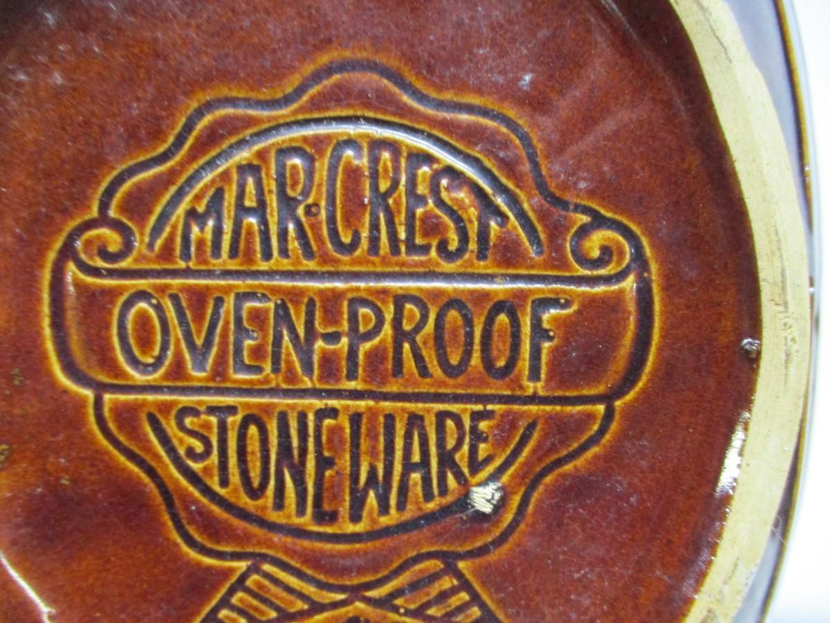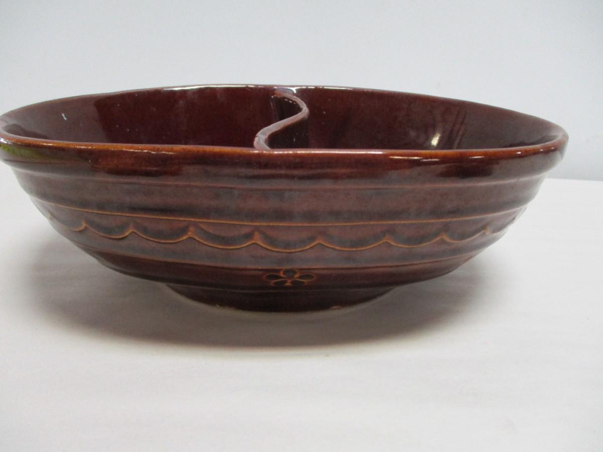 Vintage Marcrest Stoneware Daisy Dot Brown Divided Serving Dish Bowl Ovenproof & Cream & Sugar Pieces