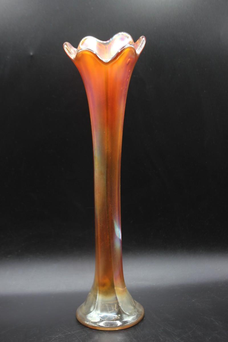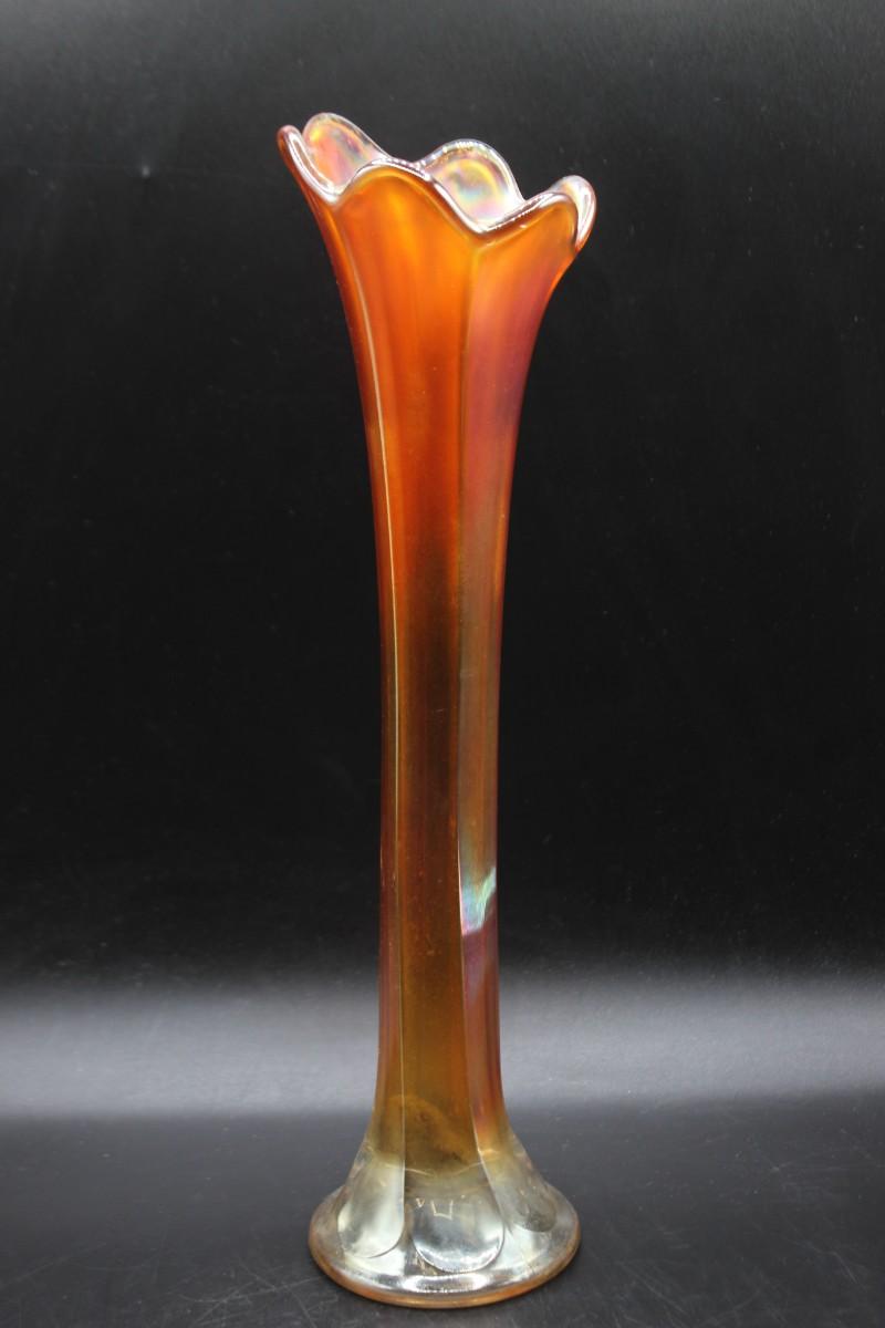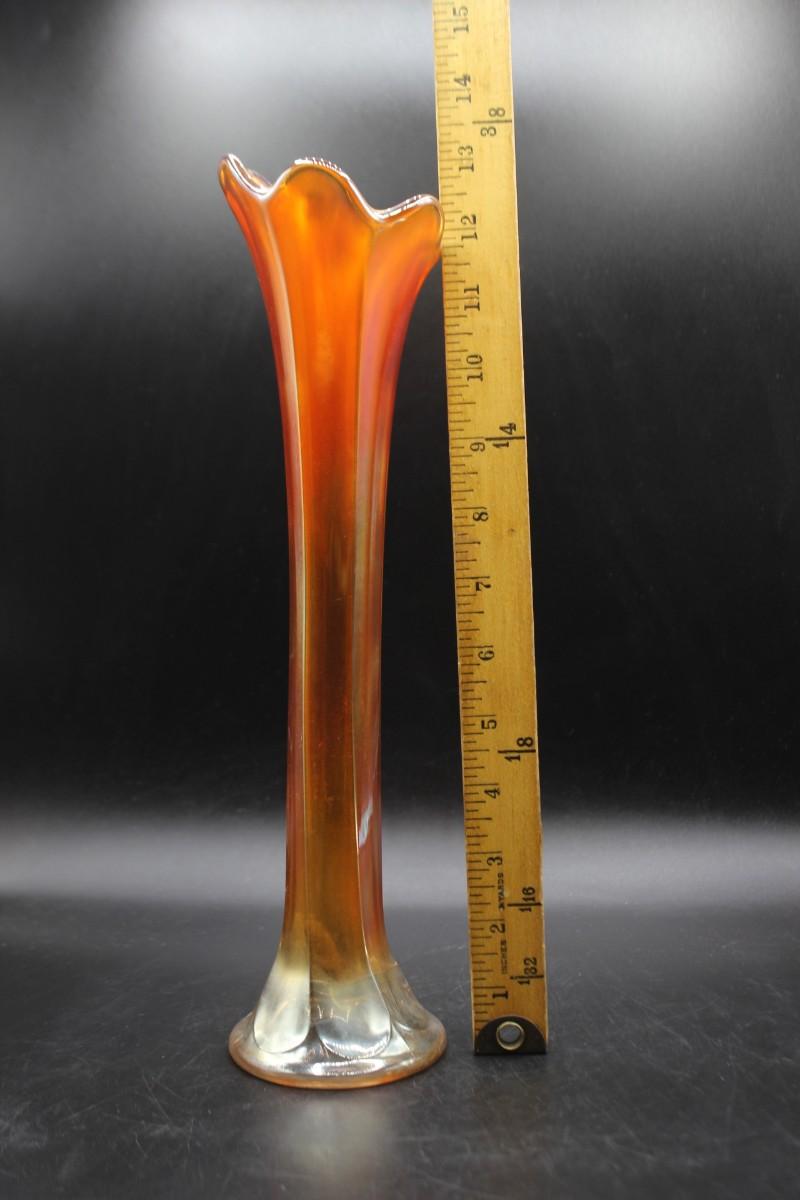 Vintage Marigold Orange Carnival Glass Swung Vase. Over 12" size. Good condition.