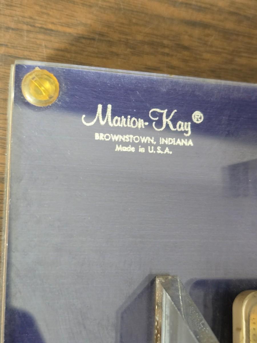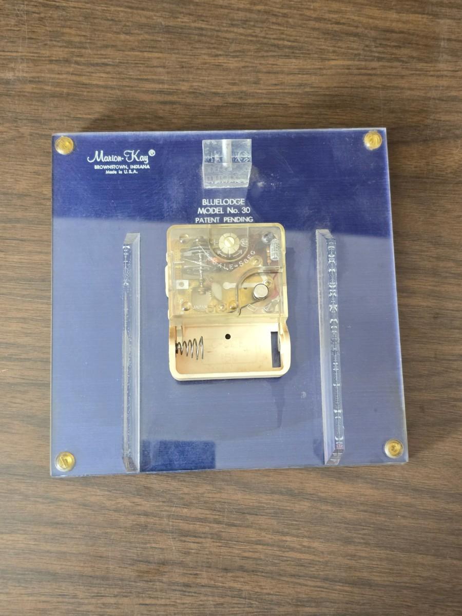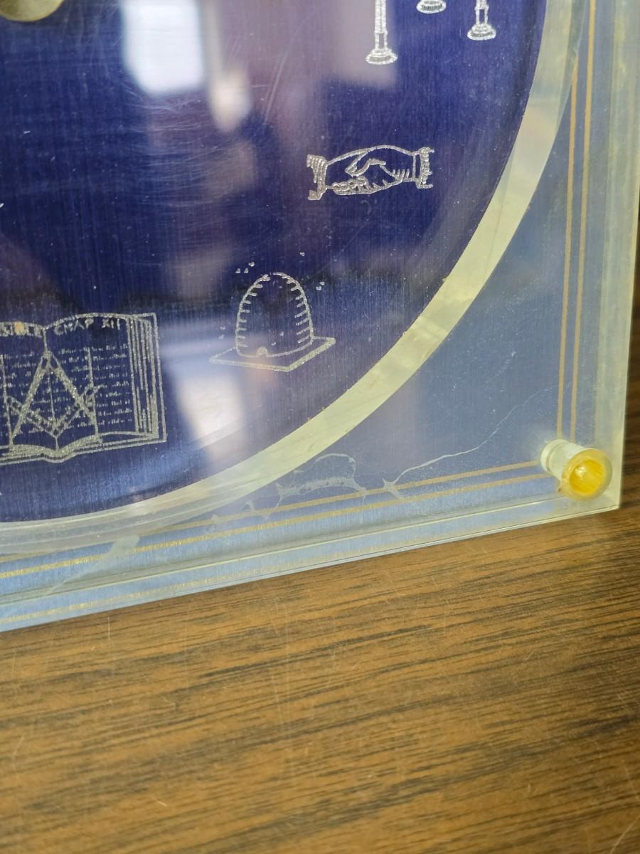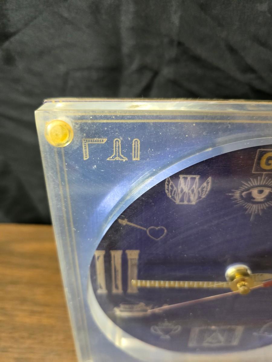 Vintage Marion Kay Masonic Desk Clock, Model No. 30 Blue Lodge with etched trinket box and a vase