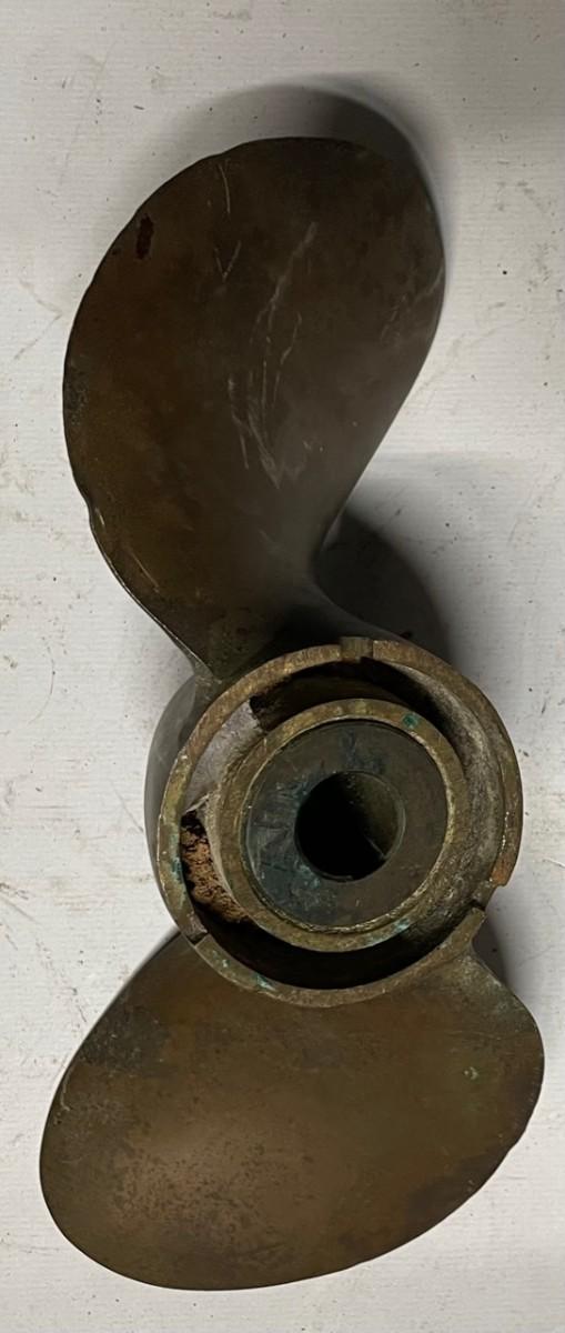 Description: VINTAGE Maritime 2-Blade Boat Propeller. Measurement approximate: 11" Diameter. Material: Brass